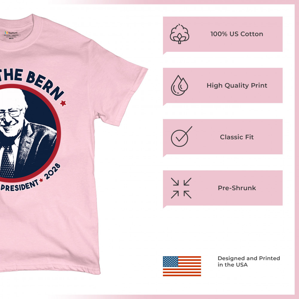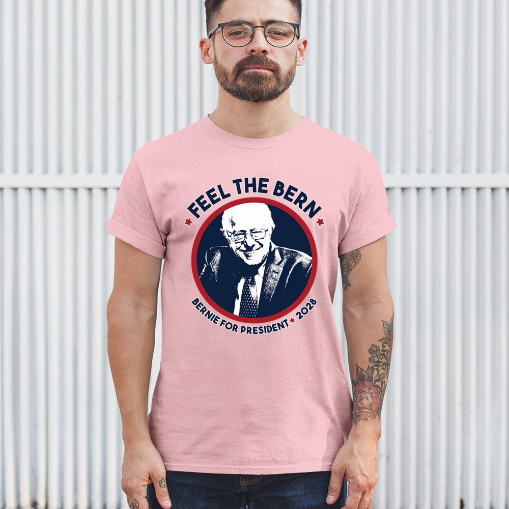Show your commitment to democratic reform with this "Feel the Bern – Bernie for President 2028" design. Featuring Bernie Sanders’ portrait and patriotic colors, it’s perfect for political events, marches, or campaign volunteering. Wear it with pride at rallies, protests, or voter registration drives to back the progressive movement.