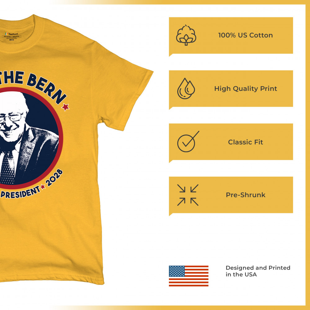 Show your commitment to democratic reform with this "Feel the Bern – Bernie for President 2028" design. Featuring Bernie Sanders’ portrait and patriotic colors, it’s perfect for political events, marches, or campaign volunteering. Wear it with pride at rallies, protests, or voter registration drives to back the progressive movement.
