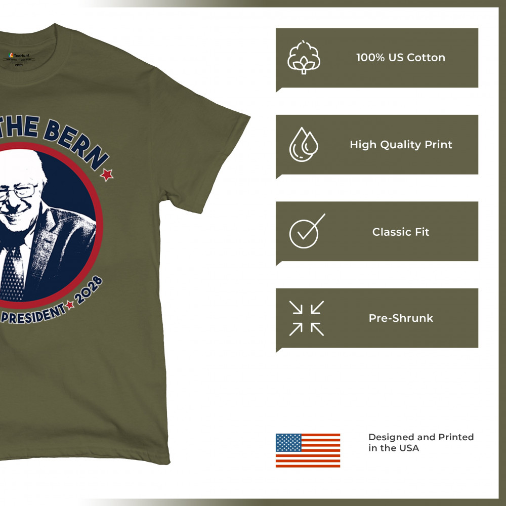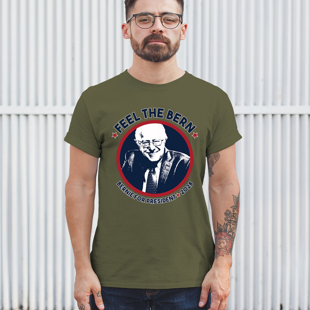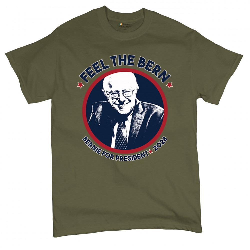 Show your commitment to democratic reform with this "Feel the Bern – Bernie for President 2028" design. Featuring Bernie Sanders’ portrait and patriotic colors, it’s perfect for political events, marches, or campaign volunteering. Wear it with pride at rallies, protests, or voter registration drives to back the progressive movement.