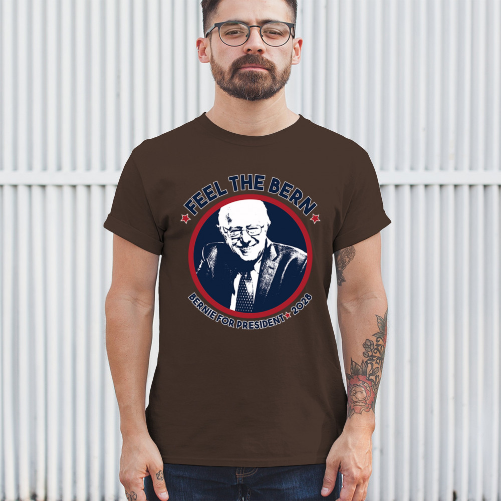 Show your commitment to democratic reform with this "Feel the Bern – Bernie for President 2028" design. Featuring Bernie Sanders’ portrait and patriotic colors, it’s perfect for political events, marches, or campaign volunteering. Wear it with pride at rallies, protests, or voter registration drives to back the progressive movement.