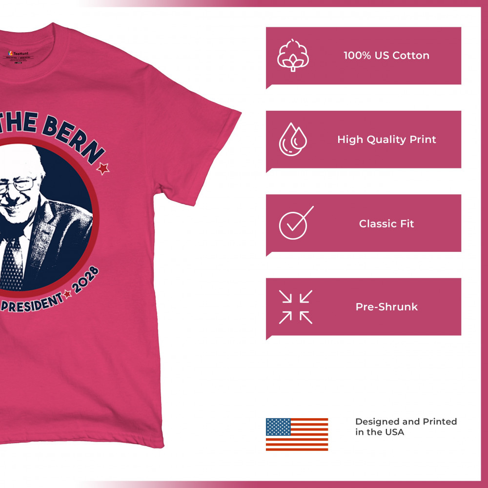 Show your commitment to democratic reform with this "Feel the Bern – Bernie for President 2028" design. Featuring Bernie Sanders’ portrait and patriotic colors, it’s perfect for political events, marches, or campaign volunteering. Wear it with pride at rallies, protests, or voter registration drives to back the progressive movement.