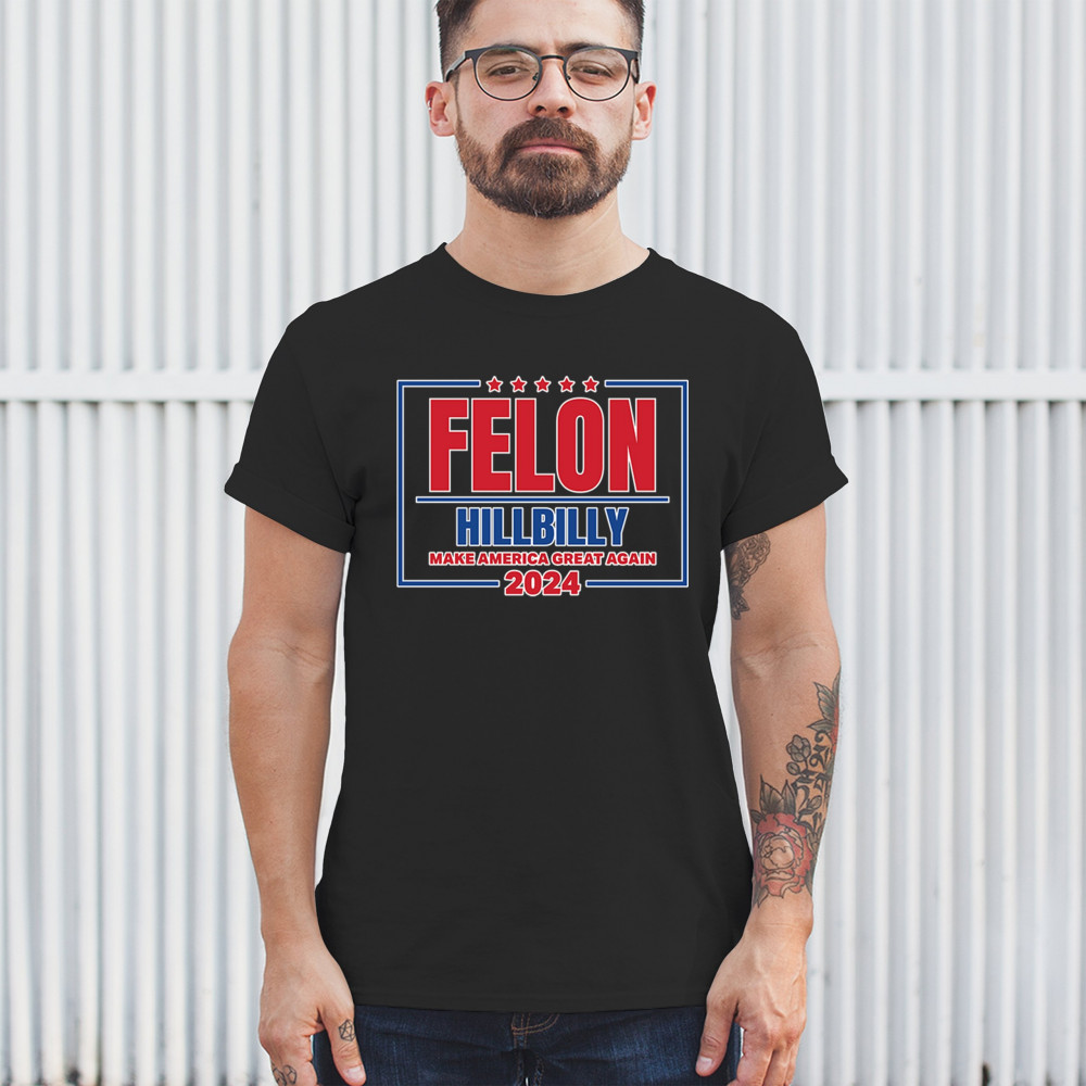 he "Felon Hillbilly 2024" design is perfect for Trump supporters, embodying conservative values and American pride.