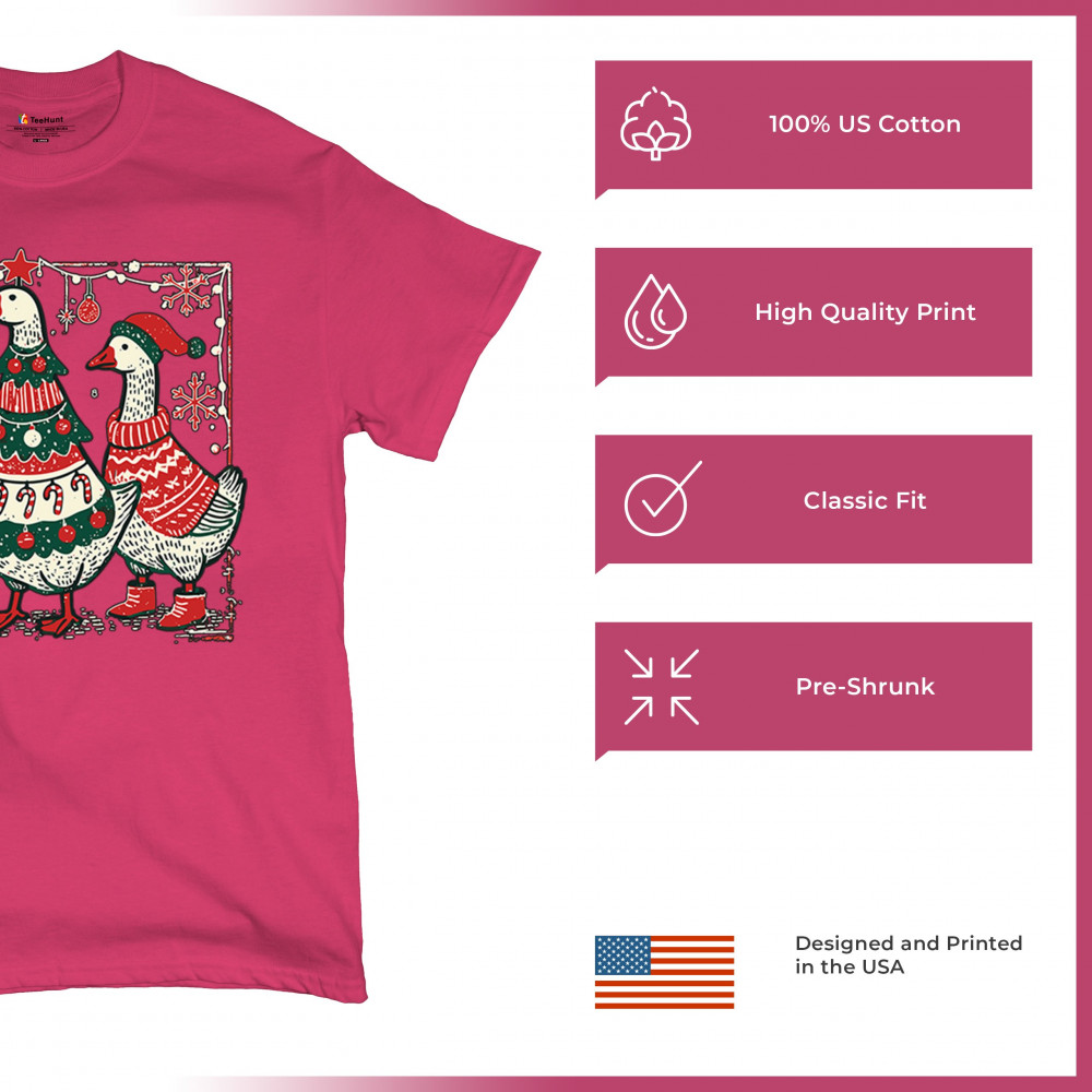 This festive goose Christmas design blends holiday humor, winter charm, and playful farm-animal personality. Featuring three geese dressed in seasonal patterns, it’s ideal for holiday parties, family gatherings, Christmas morning photos, barnyard lovers, and anyone looking for a fun seasonal graphic with cheerful holiday spirit.