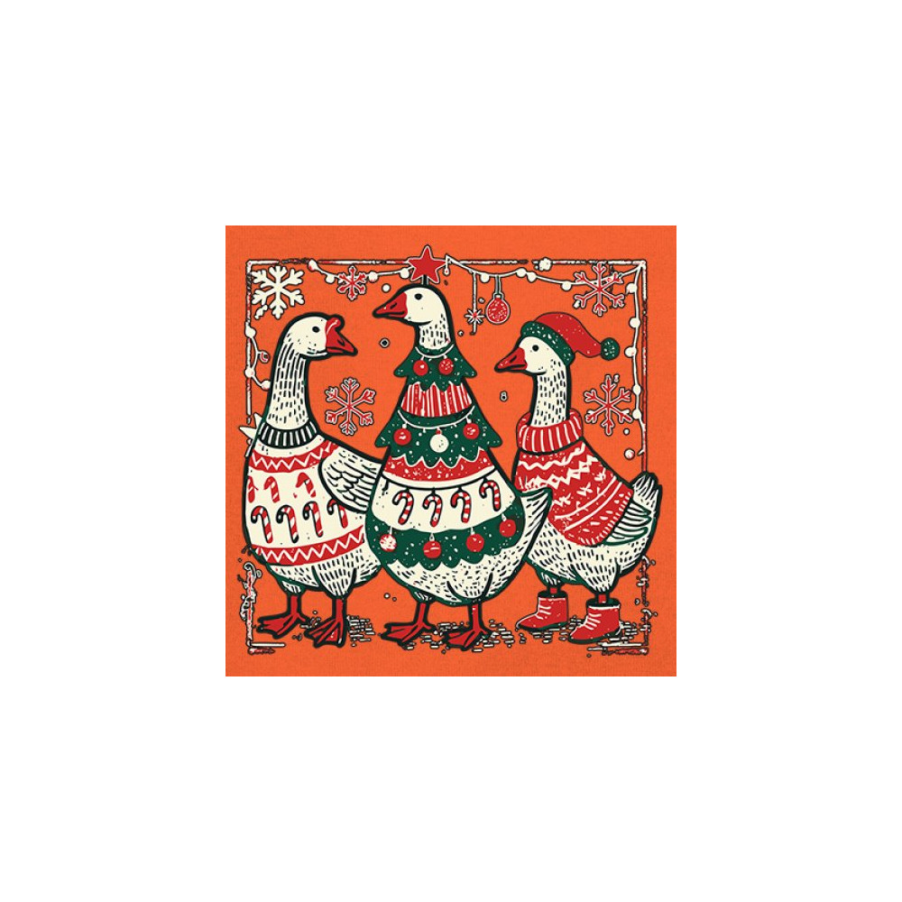 This festive goose Christmas design blends holiday humor, winter charm, and playful farm-animal personality. Featuring three geese dressed in seasonal patterns, it’s ideal for holiday parties, family gatherings, Christmas morning photos, barnyard lovers, and anyone looking for a fun seasonal graphic with cheerful holiday spirit.