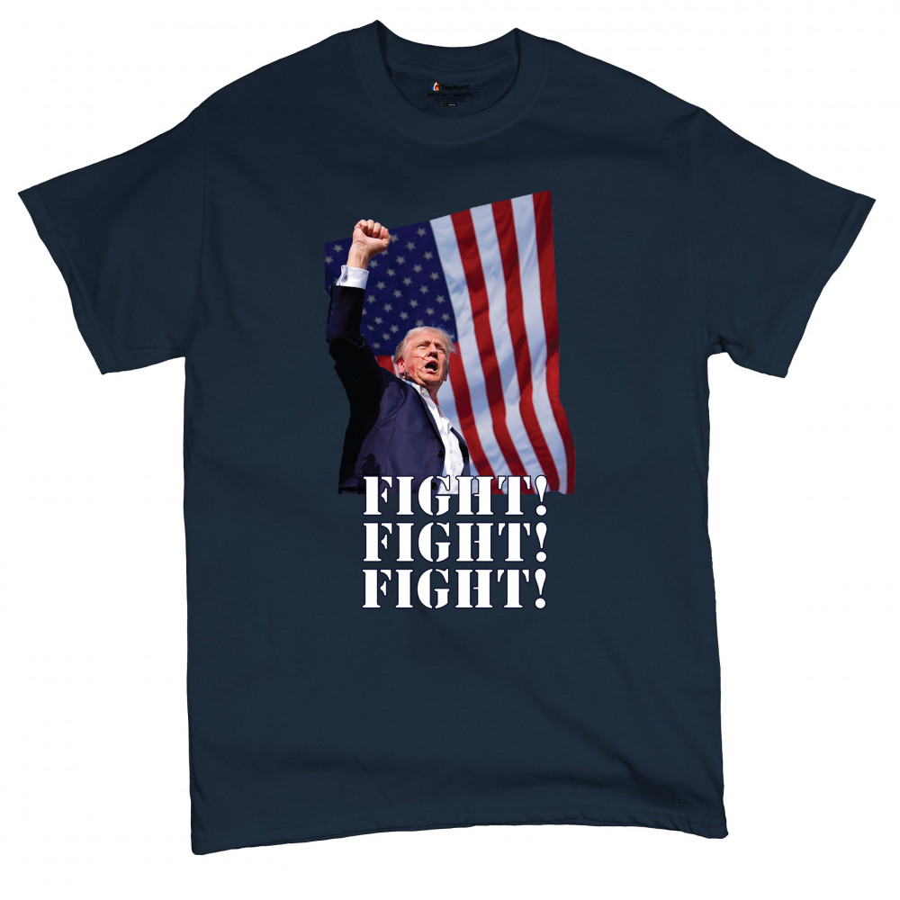 Show your support for Trump with this powerful design featuring him in front of the American flag. Perfect for rallies and daily wear.