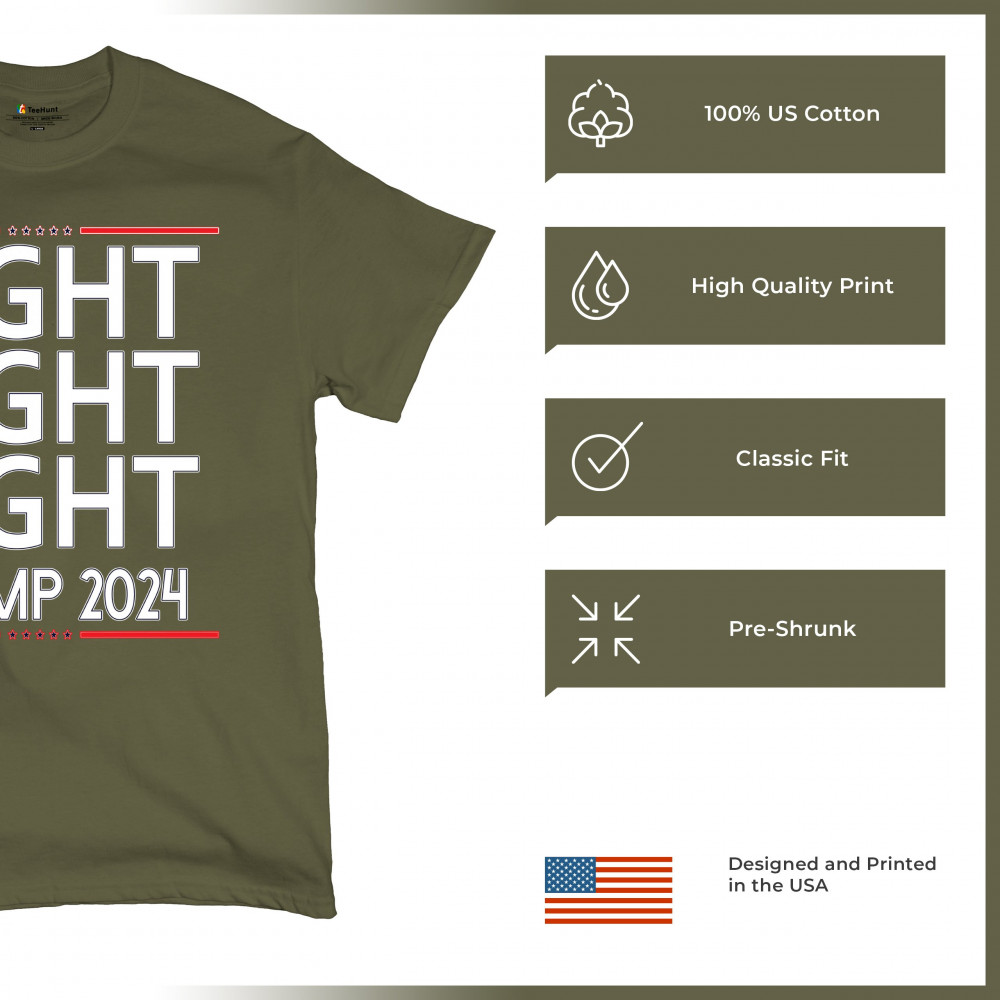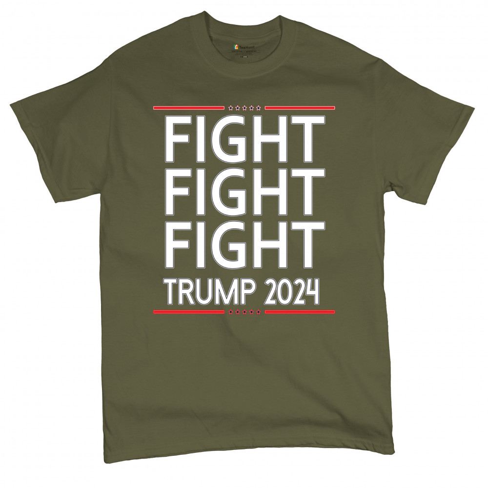 Show your Trump 2024 support with this bold "Fight Fight Fight" design. Perfect for rallies and everyday wear. Stand with America!