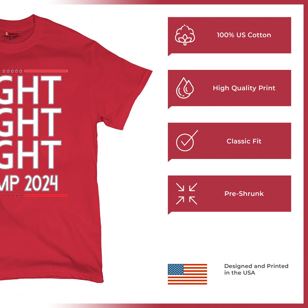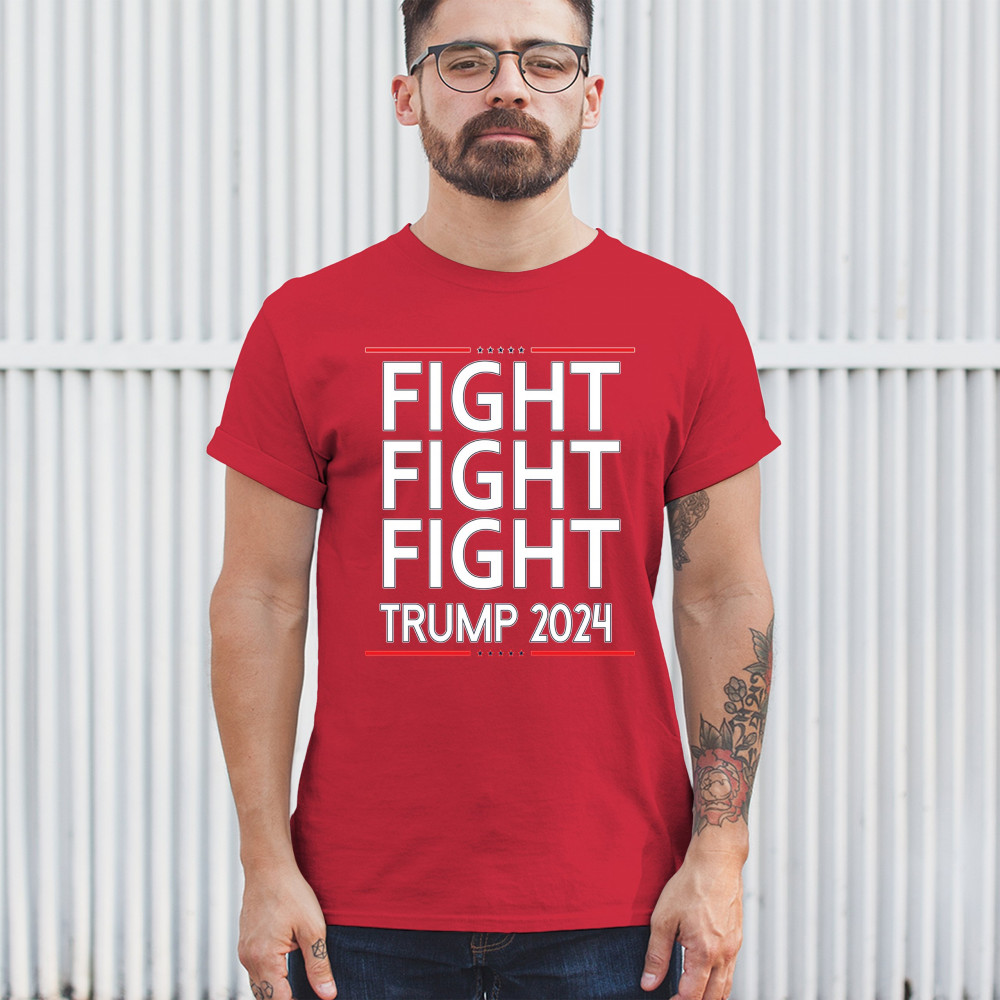 Show your Trump 2024 support with this bold "Fight Fight Fight" design. Perfect for rallies and everyday wear. Stand with America!