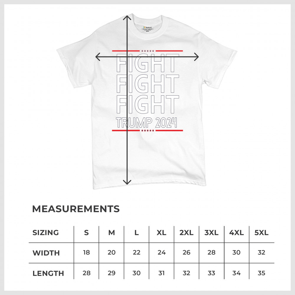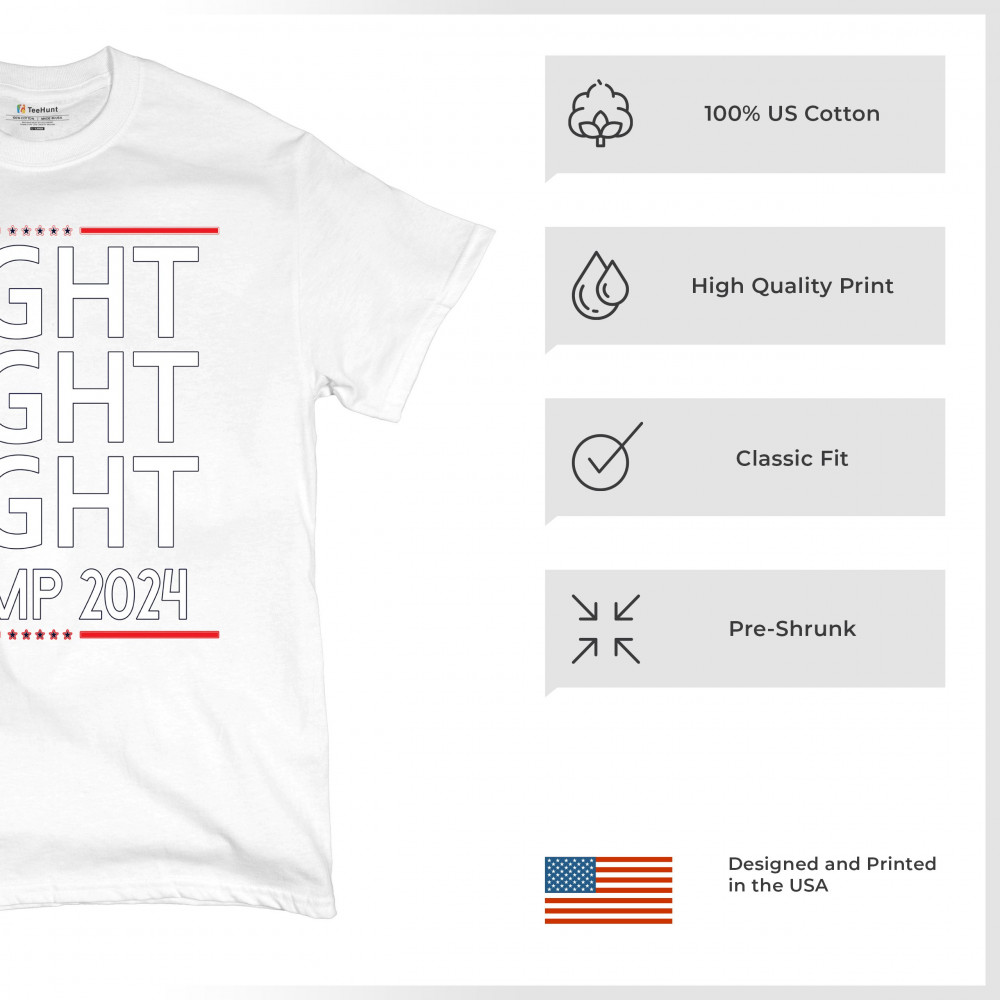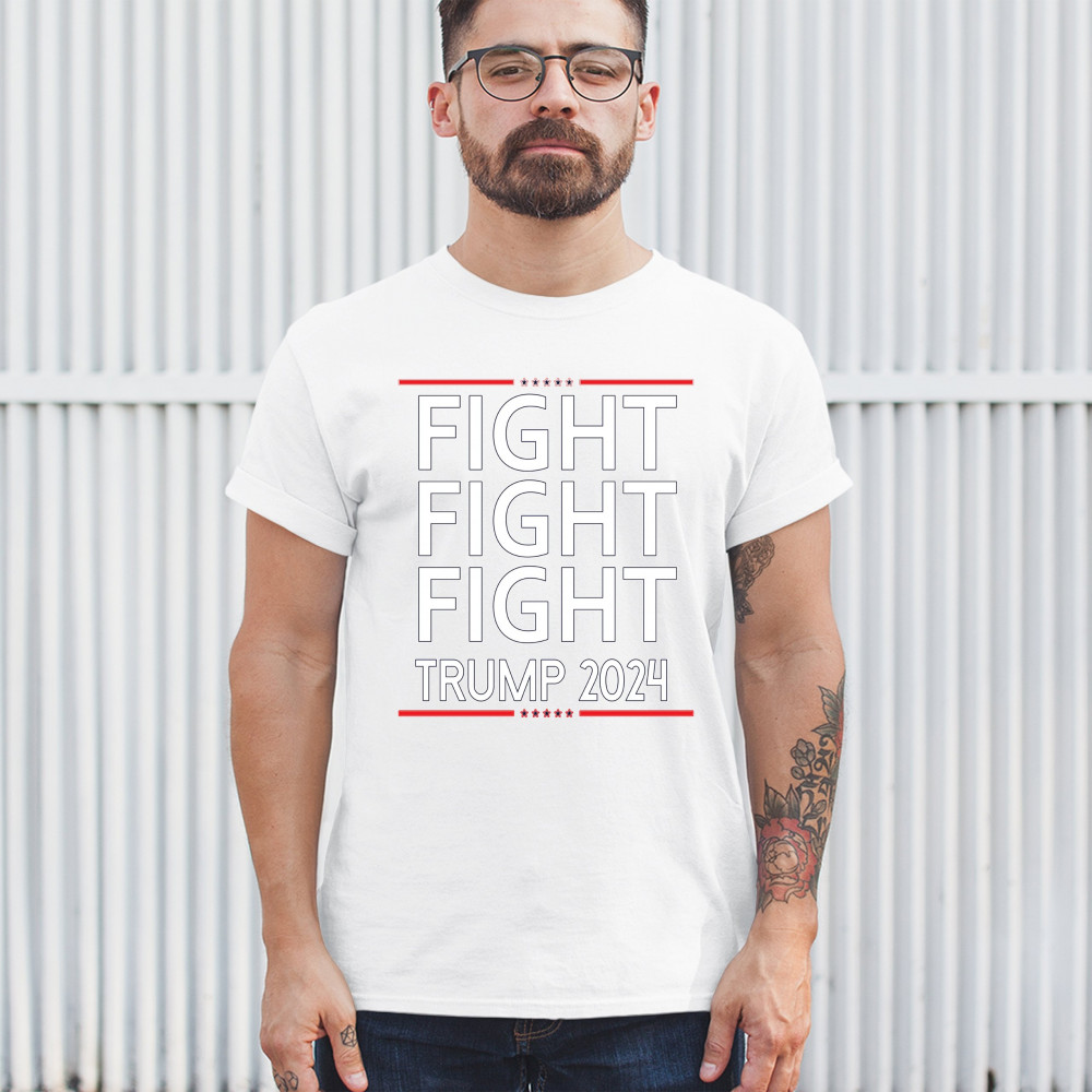 Show your Trump 2024 support with this bold "Fight Fight Fight" design. Perfect for rallies and everyday wear. Stand with America!