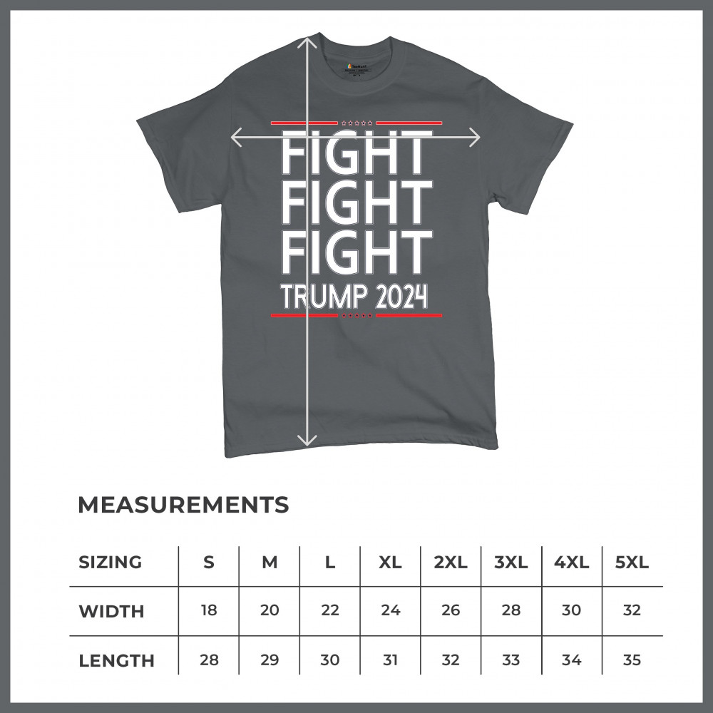 Show your Trump 2024 support with this bold "Fight Fight Fight" design. Perfect for rallies and everyday wear. Stand with America!
