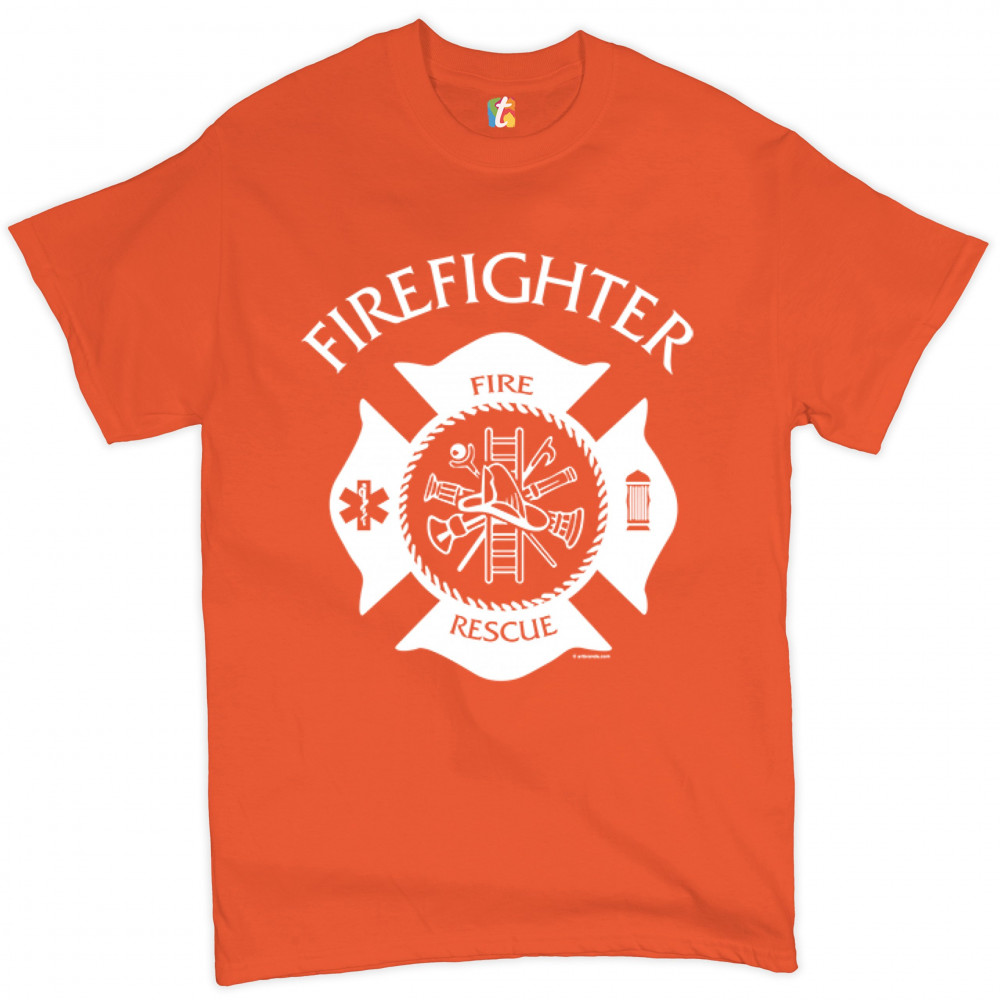 FIREFIGHTER EMBLEM t-shirt fire and rescue first responders men's tee orange