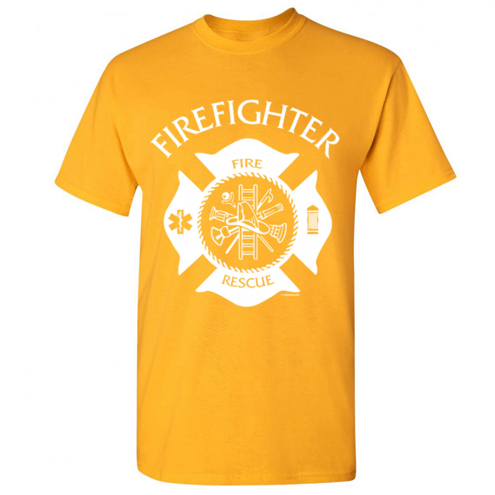 FIREFIGHTER EMBLEM t-shirt fire and rescue first responders men's tee yellow