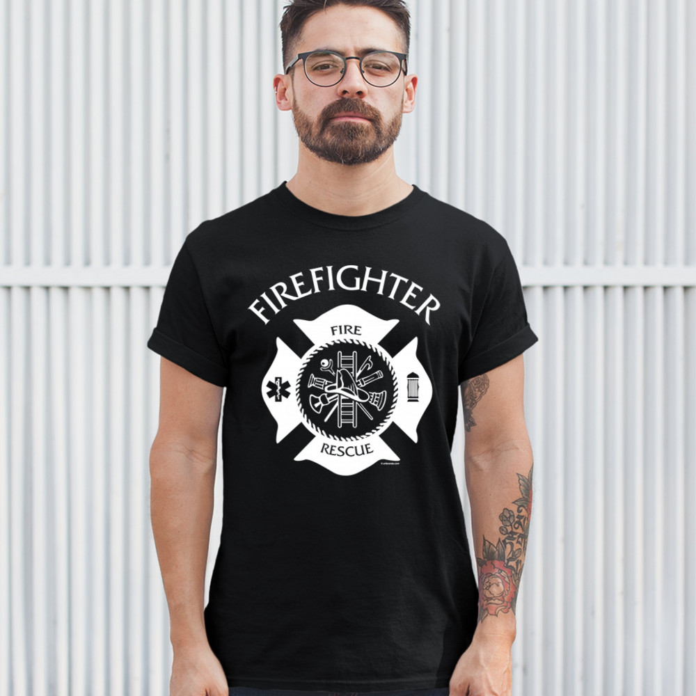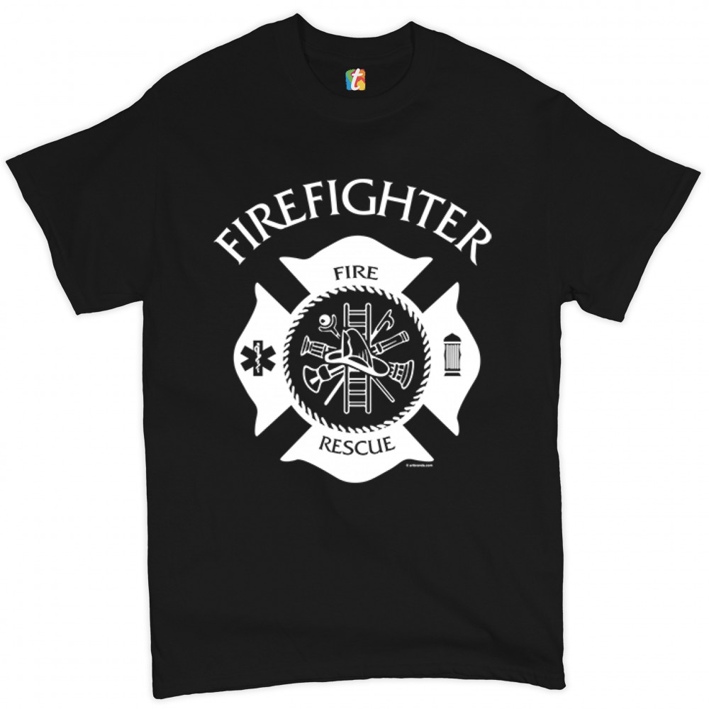 FIREFIGHTER EMBLEM t-shirt fire and rescue first responders men's tee black