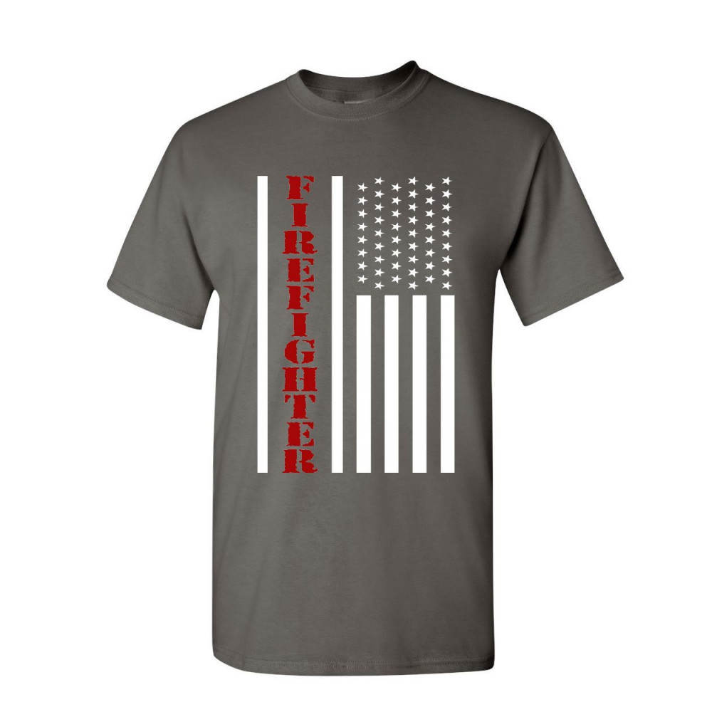 FIREFIGHTER STARS AND STRIPES t-shirt fire and rescue fire dept mens tee shirt charcoal