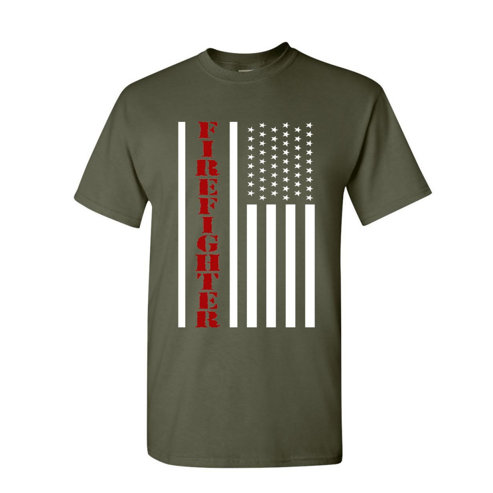FIREFIGHTER STARS AND STRIPES t-shirt fire and rescue fire dept mens tee shirt military green