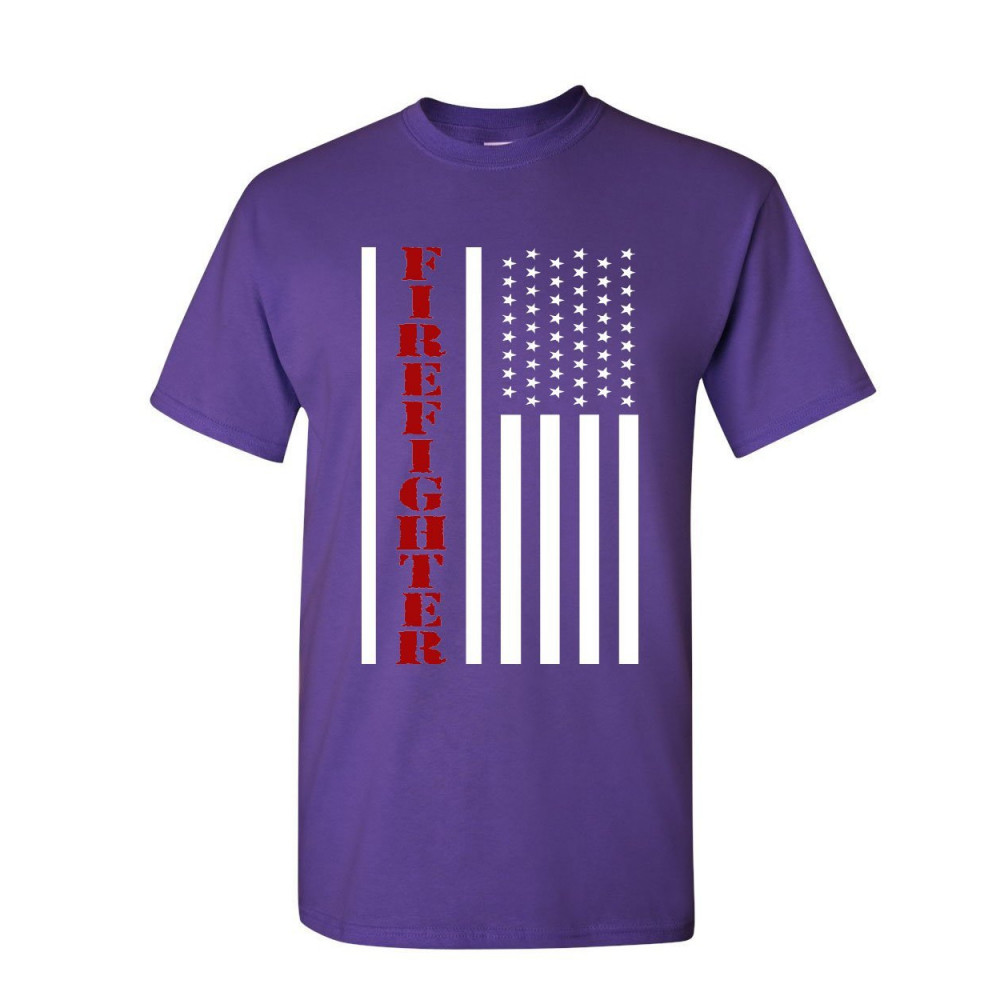 FIREFIGHTER STARS AND STRIPES t-shirt fire and rescue fire dept mens tee shirt purple