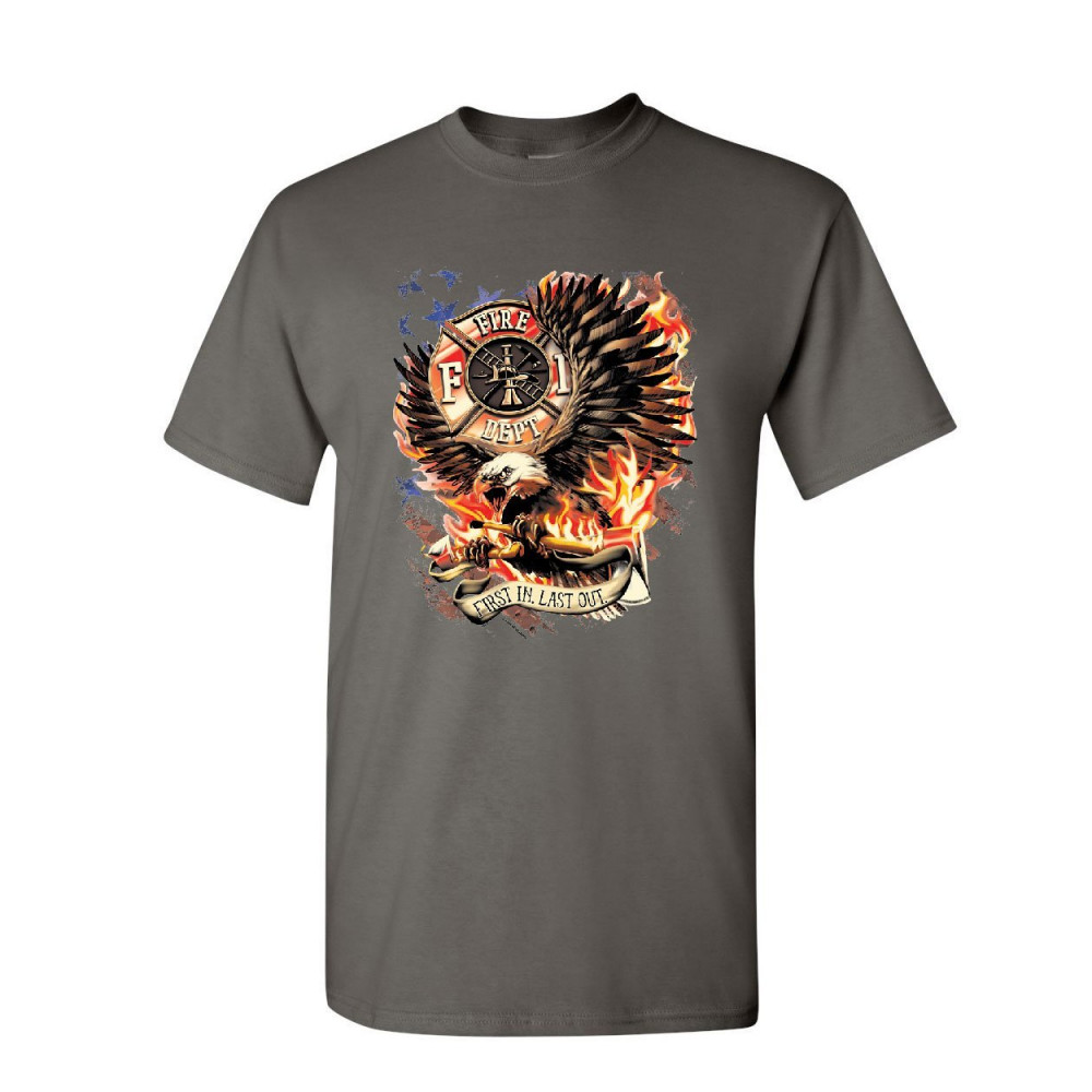 FIREFIGHTER FIRST IN LAST OUT first in last out t-shirt fire & rescue fd american firefighter mens tee shirt charcoal