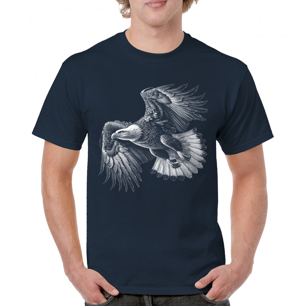 Celebrate American pride with this soaring bald eagle design. With wings extended and monochrome detail that symbolizes liberty and strength, it's perfect for patriots, veterans, and national holiday wear. A timeless tribute to freedom, this design is ideal for memorial events, rallies, and anyone who honors the red, white, and blue.