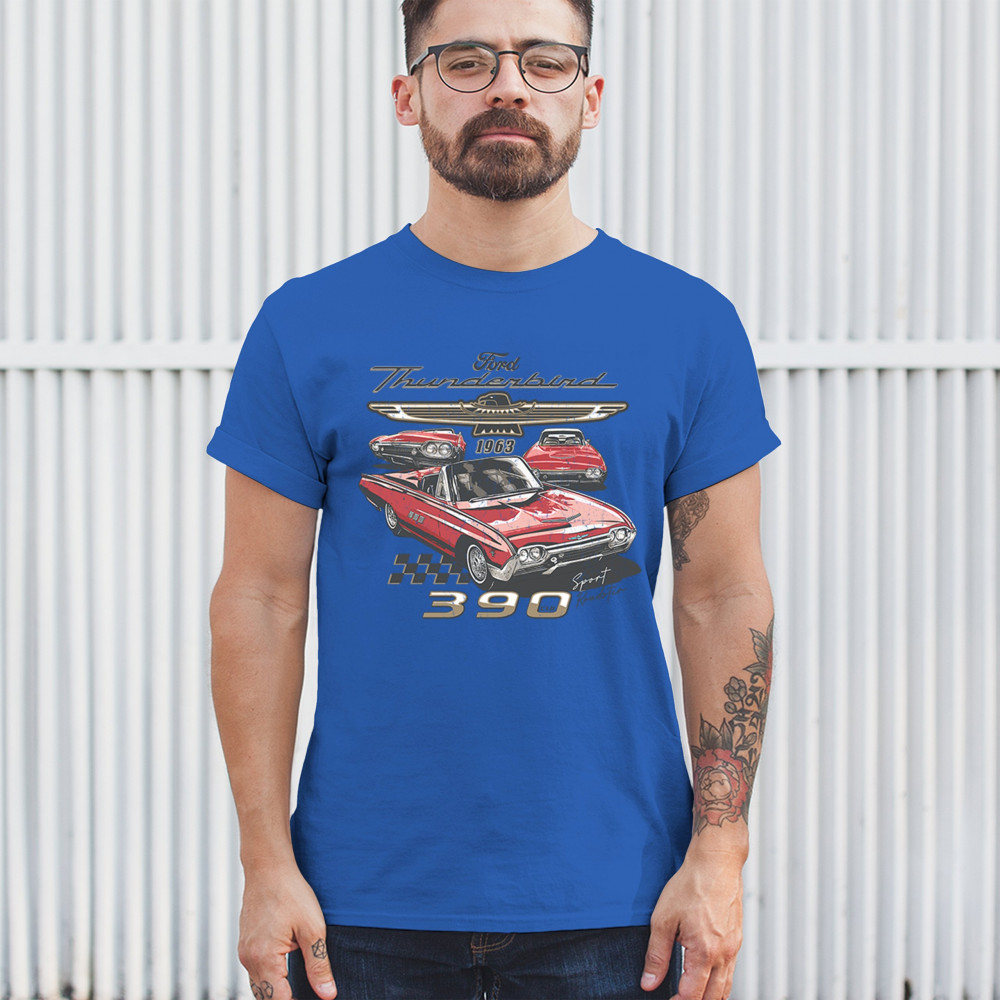 Celebrate the style and power of the 1963 Ford Thunderbird with this striking design featuring the classic 390 V8 Sport Roadster. With its unmistakable red finish and vintage detailing, this piece captures the heart of American auto history. A perfect tribute for Ford fans, car collectors, and retro cruising lovers.