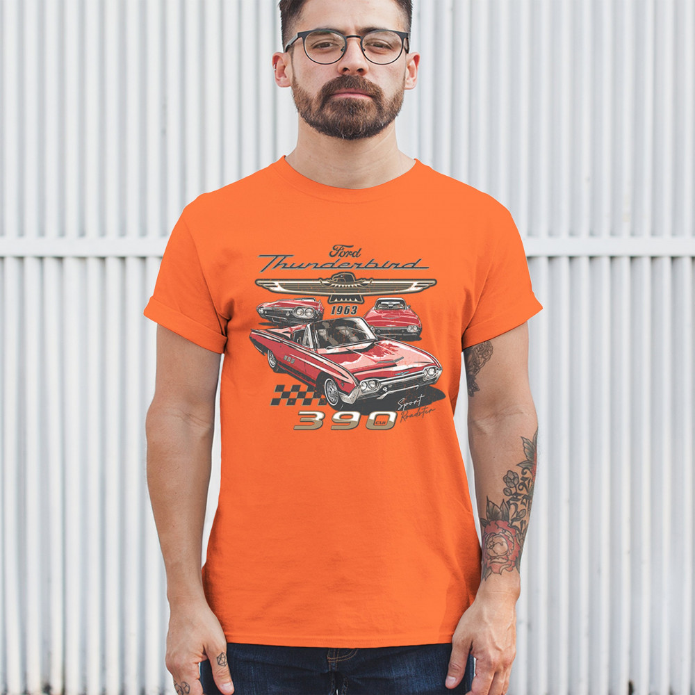 Celebrate the style and power of the 1963 Ford Thunderbird with this striking design featuring the classic 390 V8 Sport Roadster. With its unmistakable red finish and vintage detailing, this piece captures the heart of American auto history. A perfect tribute for Ford fans, car collectors, and retro cruising lovers.