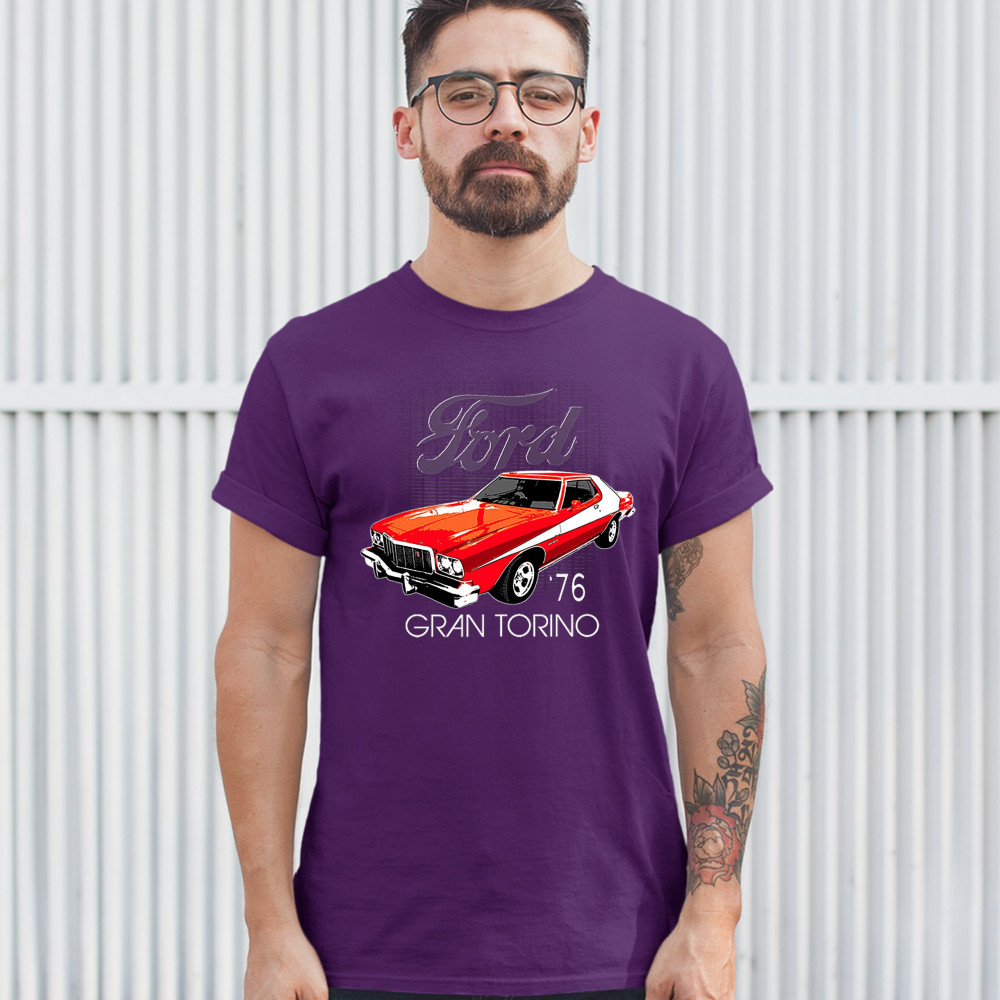 FORD '76 GRAN TORINO t-shirt 1976 american muscle car licensed men's tee purple
