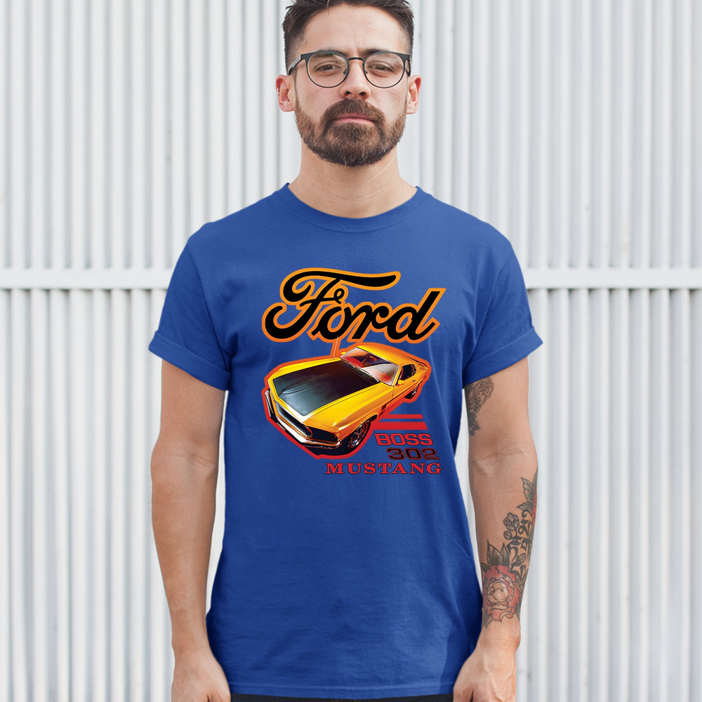 FORD BOSS 302 MUSTANG t-shirt vintage american muscle car licensed men's tee royal blue
