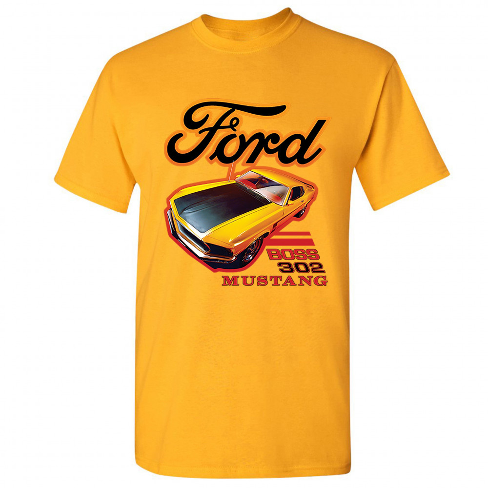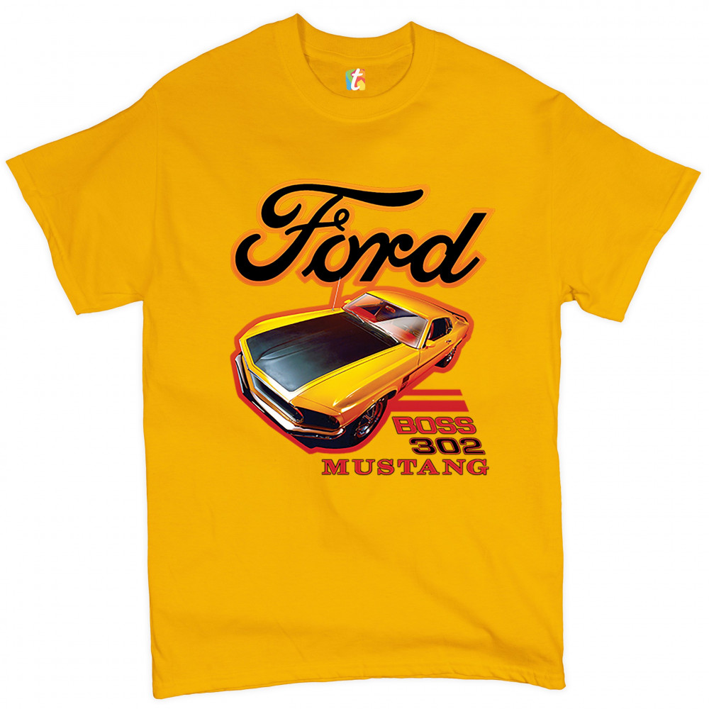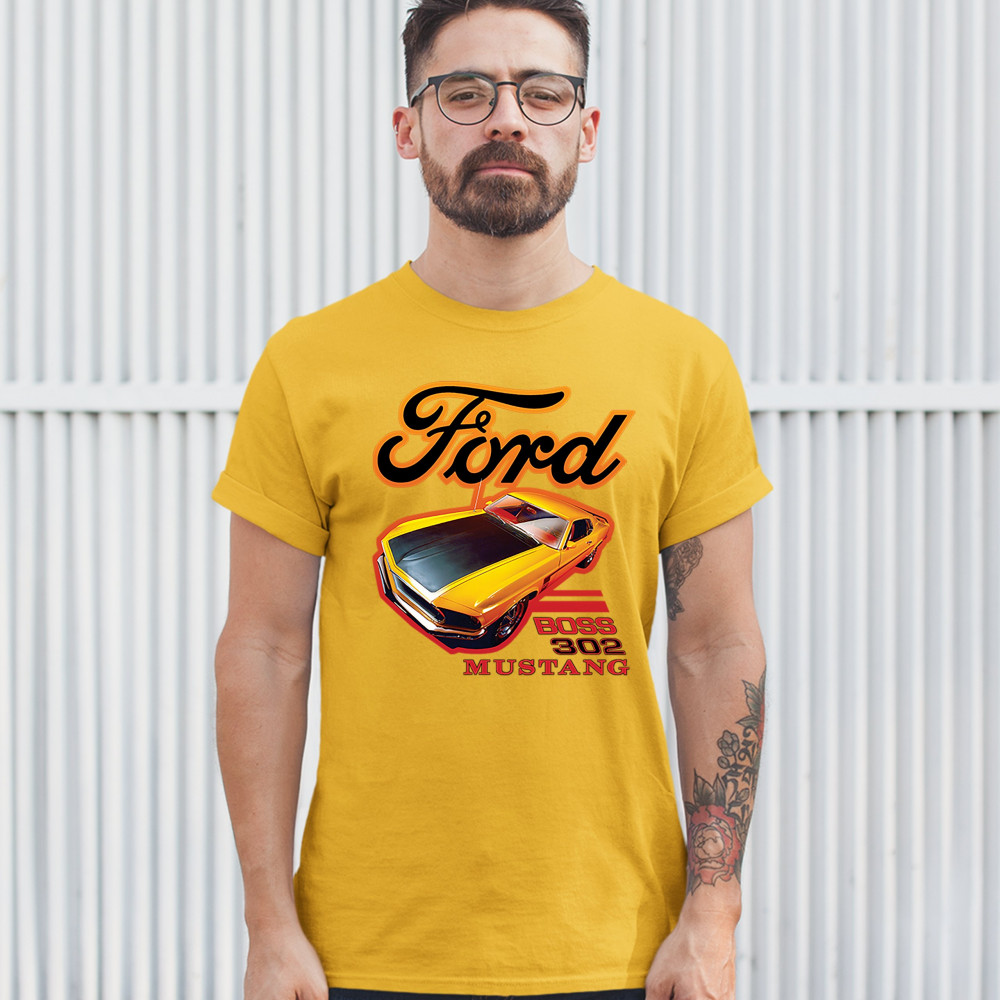 FORD BOSS 302 MUSTANG t-shirt vintage american muscle car licensed men's tee yellow