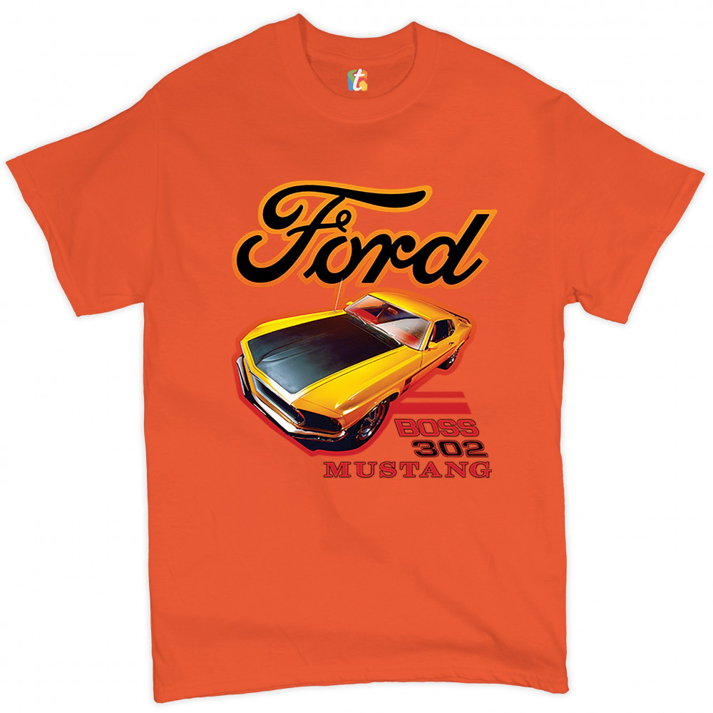 FORD BOSS 302 MUSTANG t-shirt vintage american muscle car licensed men's tee orange