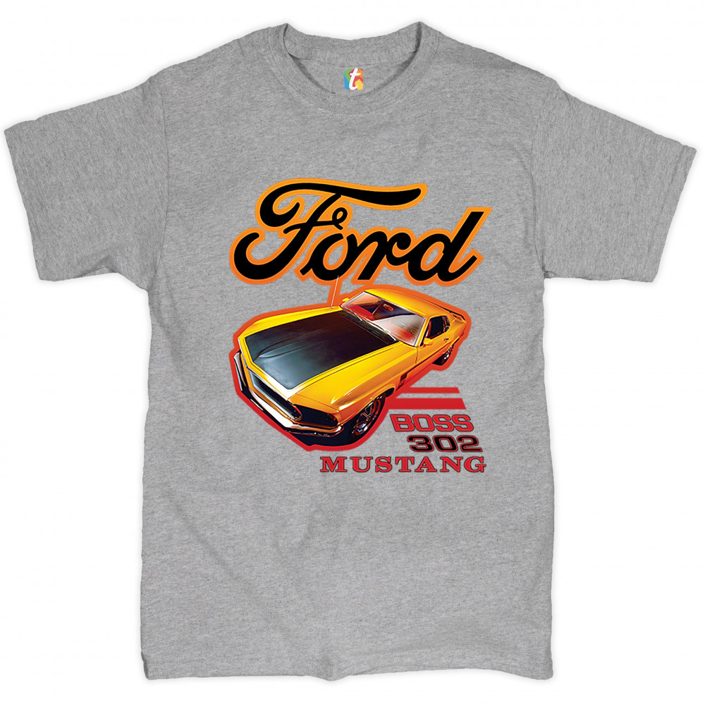 FORD BOSS 302 MUSTANG t-shirt vintage american muscle car licensed men's tee gray