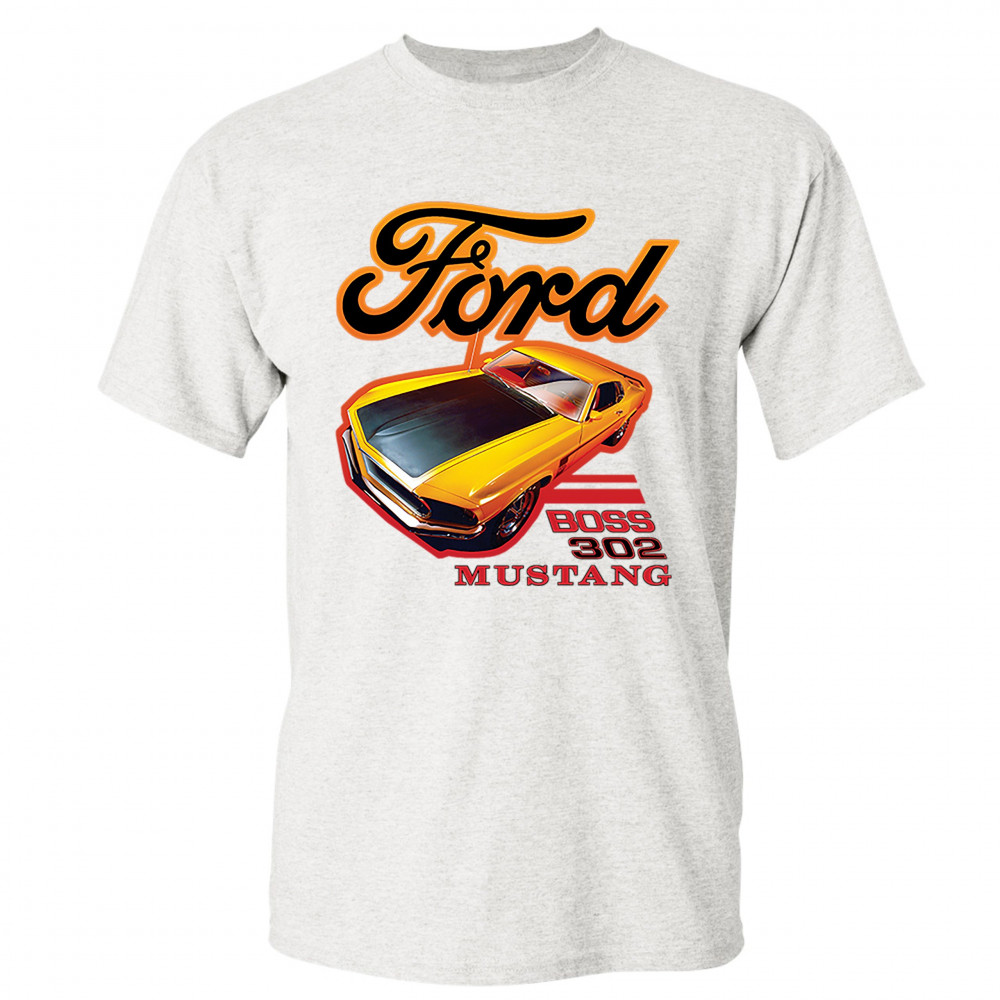 FORD BOSS 302 MUSTANG t-shirt vintage american muscle car licensed men's tee ash gray