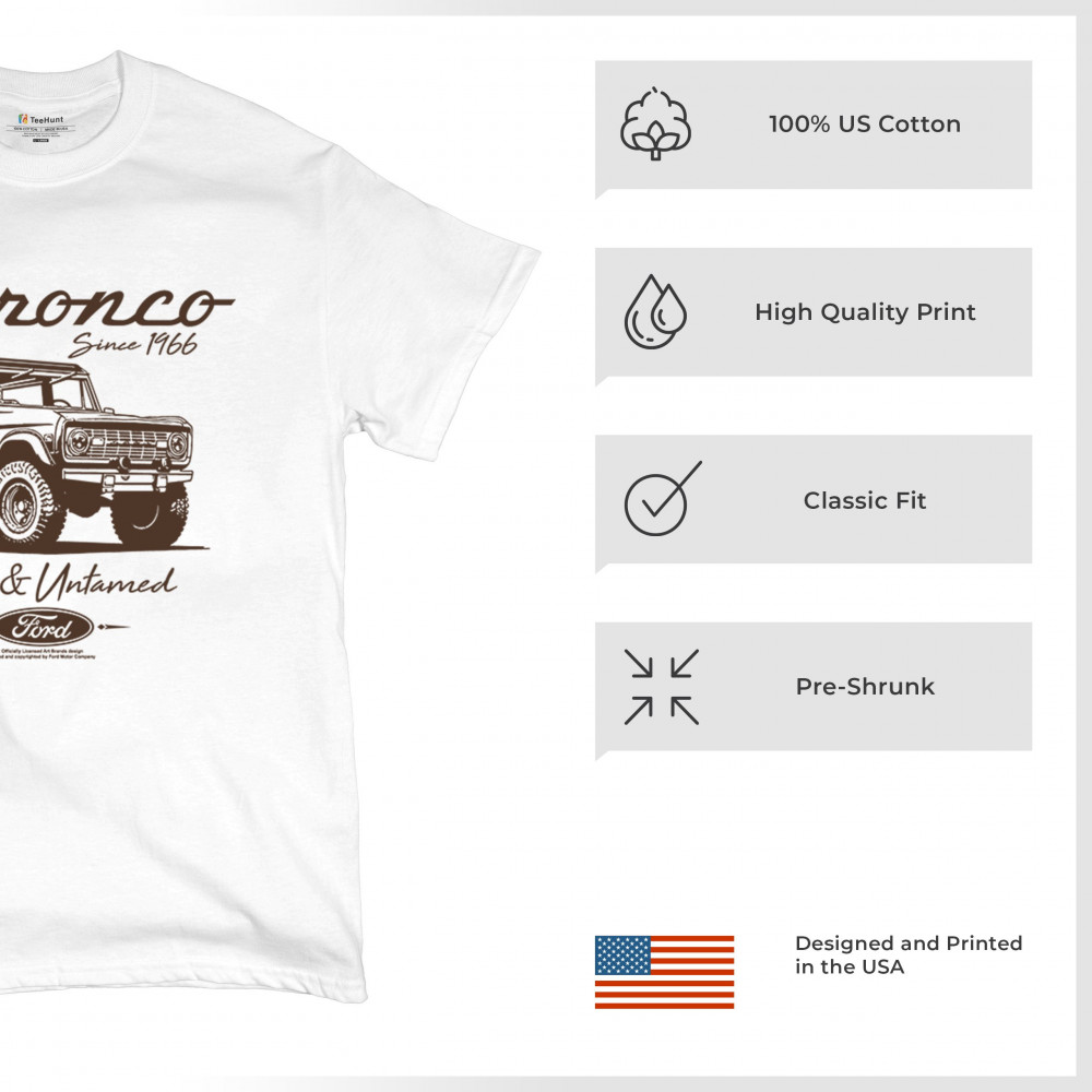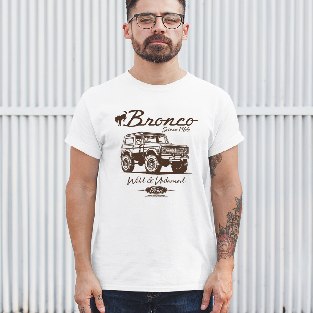 Discover the perfect gift for Ford Bronco enthusiasts with this officially licensed apparel. Highlighting "Bronco Since 1966" and "Wild and Untamed," the design captures the rugged charm of this iconic off-road SUV. Ideal for classic car lovers, outdoor explorers, and 4x4 adventurers, this vintage collectible represents the adventure-ready spirit of the Bronco.