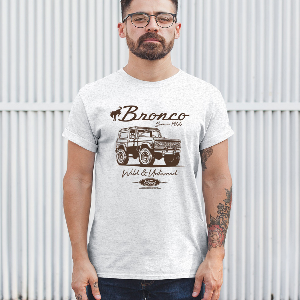 Discover the perfect gift for Ford Bronco enthusiasts with this officially licensed apparel. Highlighting "Bronco Since 1966" and "Wild and Untamed," the design captures the rugged charm of this iconic off-road SUV. Ideal for classic car lovers, outdoor explorers, and 4x4 adventurers, this vintage collectible represents the adventure-ready spirit of the Bronco.