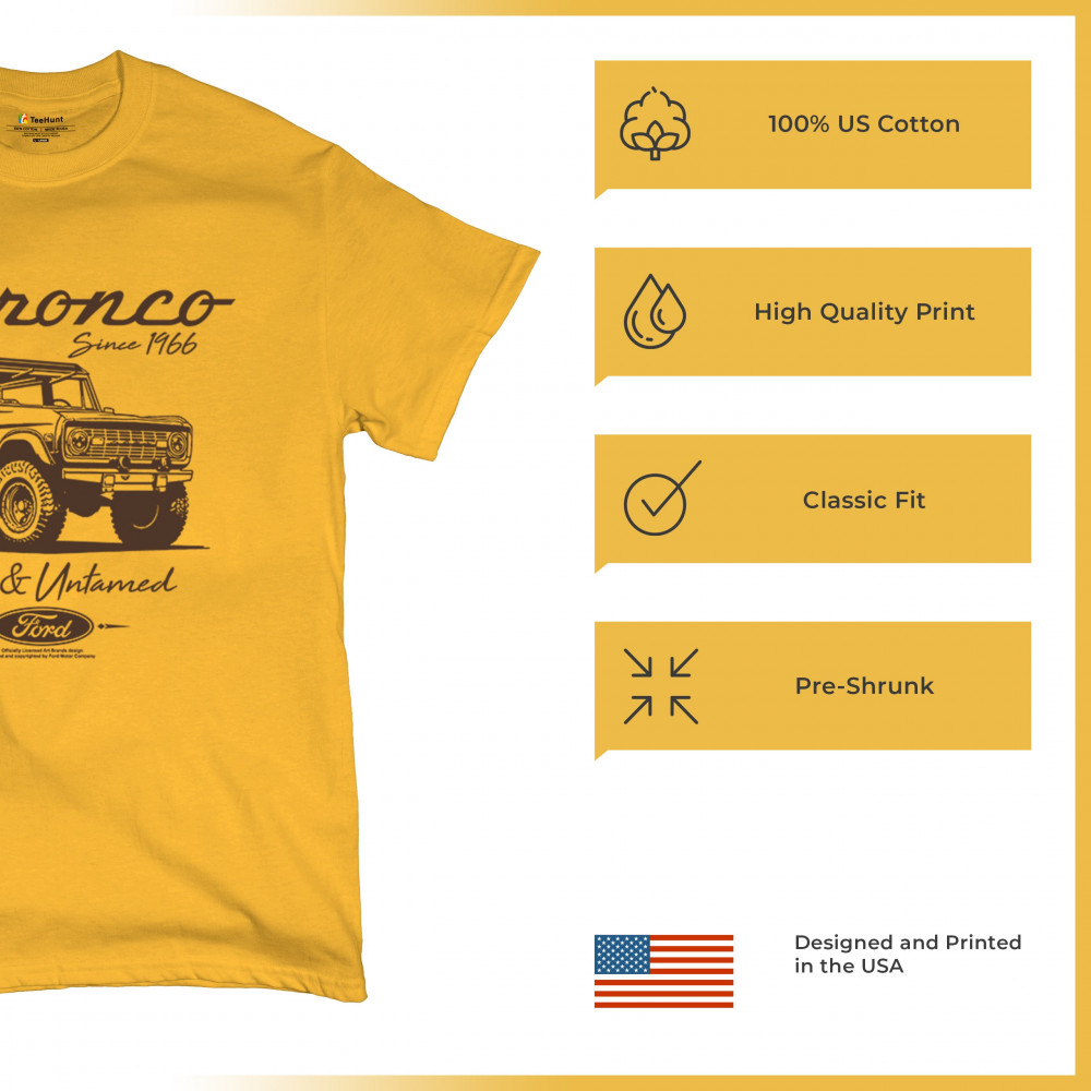 Discover the perfect gift for Ford Bronco enthusiasts with this officially licensed apparel. Highlighting "Bronco Since 1966" and "Wild and Untamed," the design captures the rugged charm of this iconic off-road SUV. Ideal for classic car lovers, outdoor explorers, and 4x4 adventurers, this vintage collectible represents the adventure-ready spirit of the Bronco.