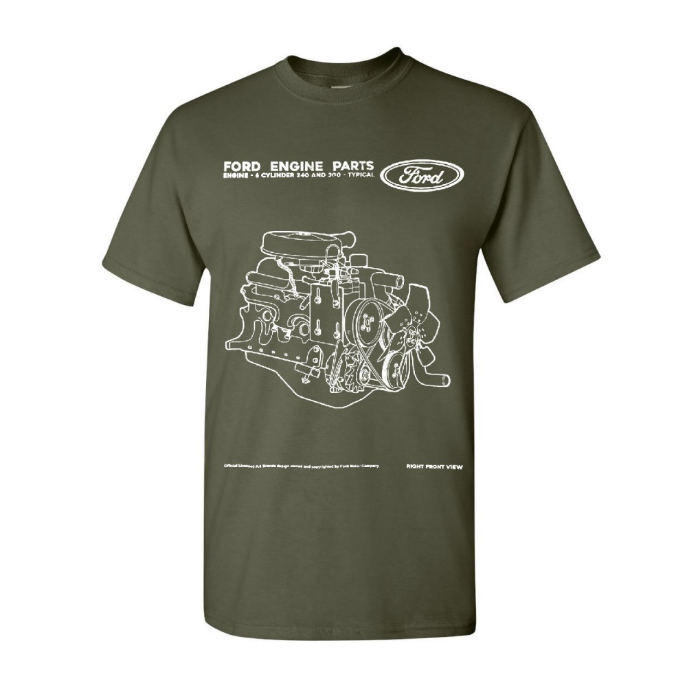 FORD ENGINE PARTS t-shirt 6 cylinder motor cotton tee military green