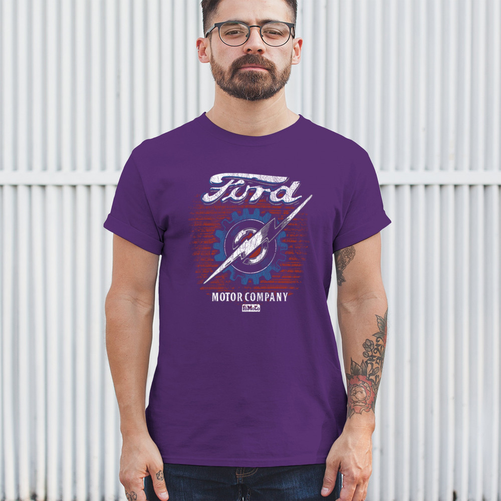 This officially licensed Ford Motor Company design showcases a distressed patriotic theme, bold lightning bolt, and vintage industrial gear emblem, symbolizing the power of American automotive innovation. Perfect for classic car lovers, muscle car enthusiasts, and Ford history fans, this design pays tribute to high-performance heritage, FoMoCo branding, and the legacy of American muscle.