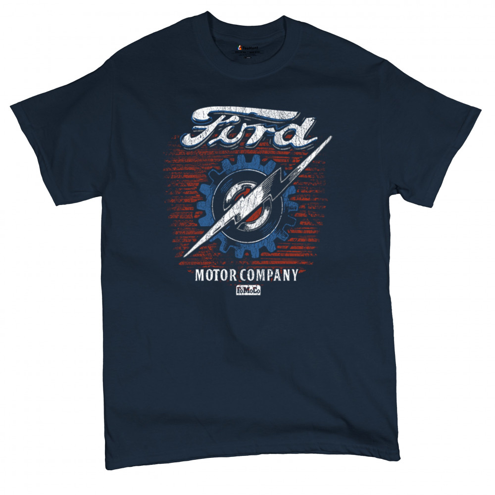 This officially licensed Ford Motor Company design showcases a distressed patriotic theme, bold lightning bolt, and vintage industrial gear emblem, symbolizing the power of American automotive innovation. Perfect for classic car lovers, muscle car enthusiasts, and Ford history fans, this design pays tribute to high-performance heritage, FoMoCo branding, and the legacy of American muscle.