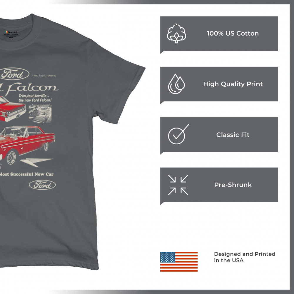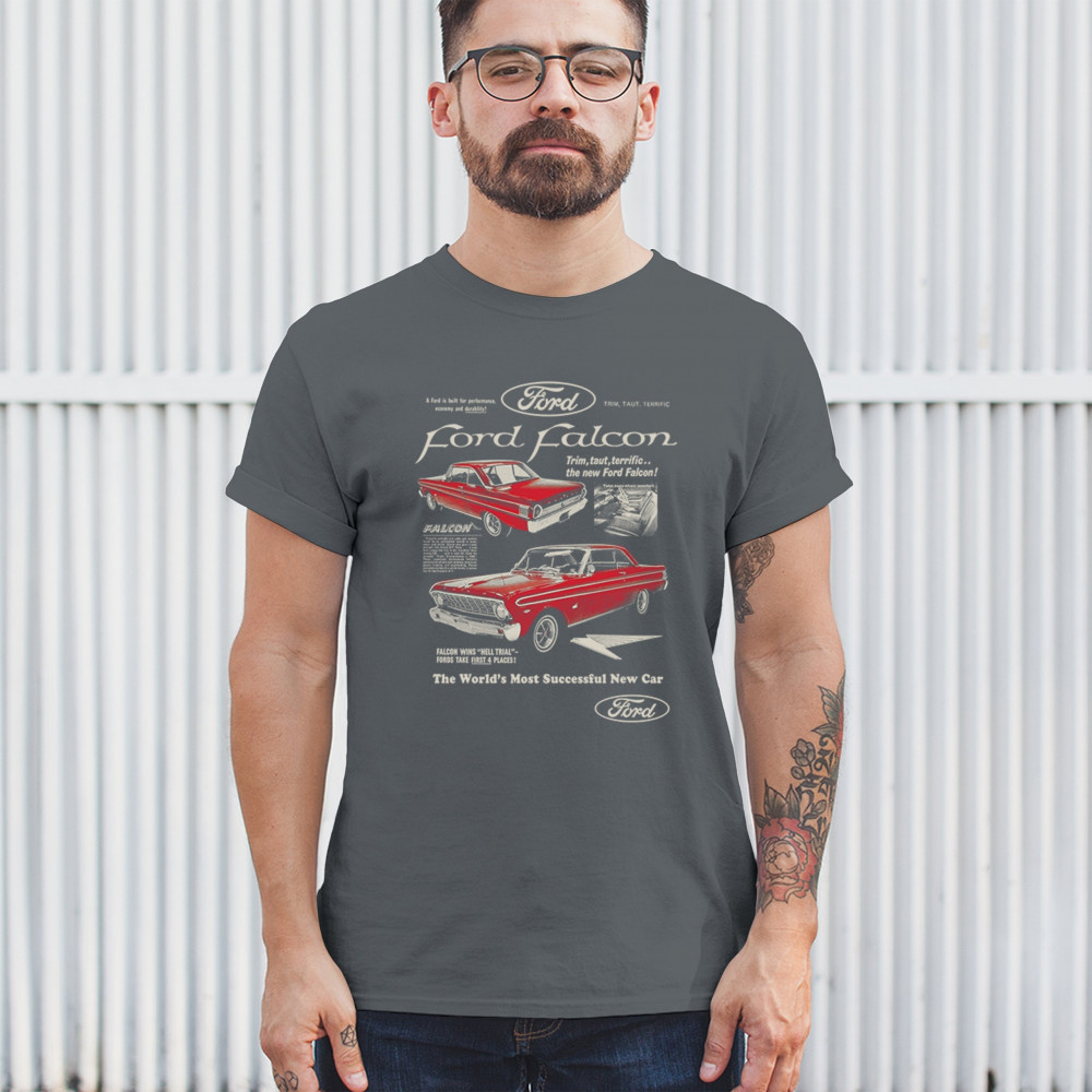 Showcase your love for classic cars with this Ford Falcon retro poster design. A vintage tribute featuring iconic 60s and 70s styling, perfect for gearheads, auto enthusiasts, hot rod fans, and collectors of American classics. Affordable everyday apparel packed with old school horsepower.