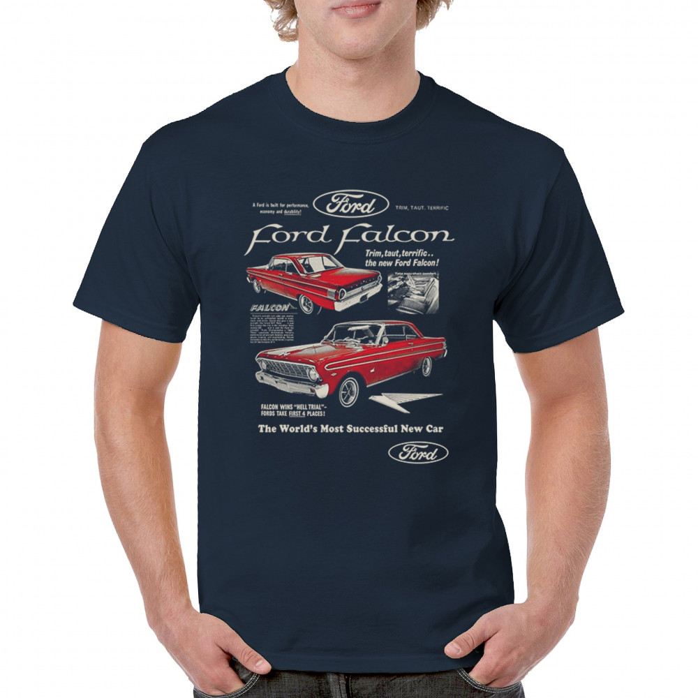 Showcase your love for classic cars with this Ford Falcon retro poster design. A vintage tribute featuring iconic 60s and 70s styling, perfect for gearheads, auto enthusiasts, hot rod fans, and collectors of American classics. Affordable everyday apparel packed with old school horsepower.