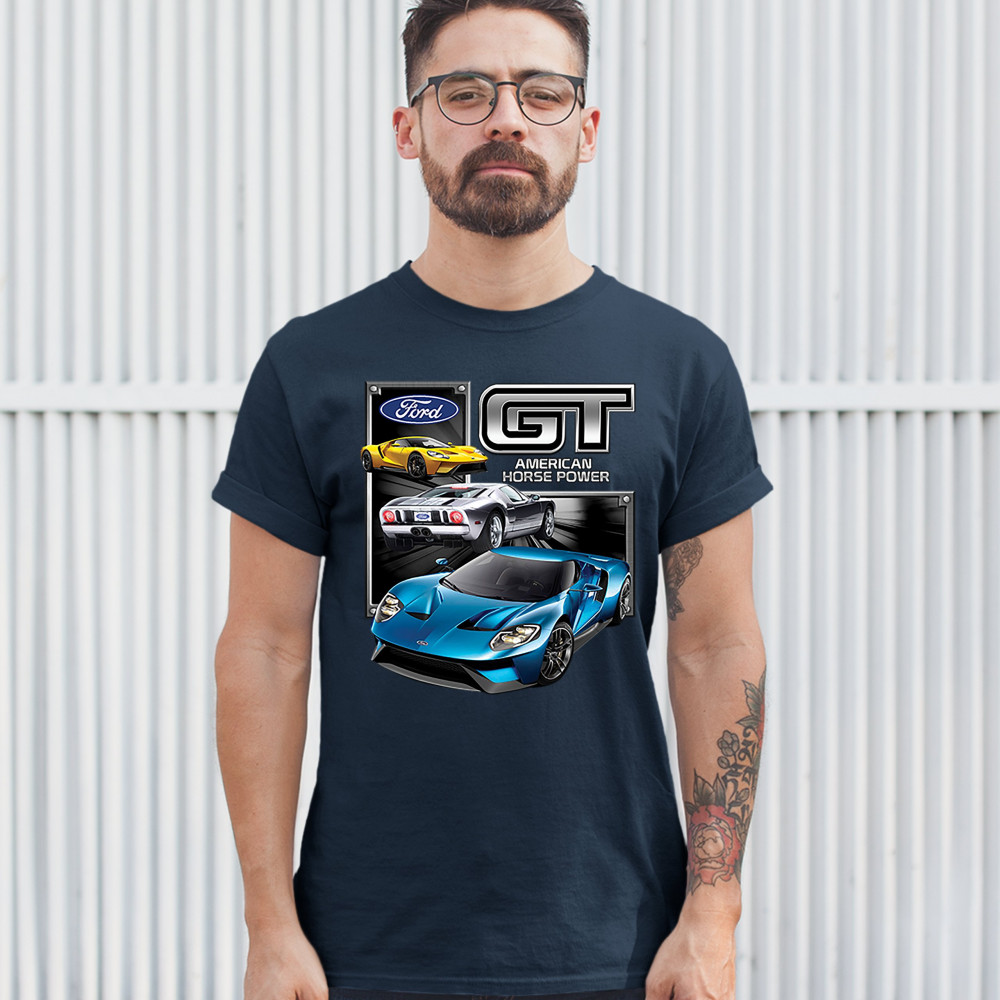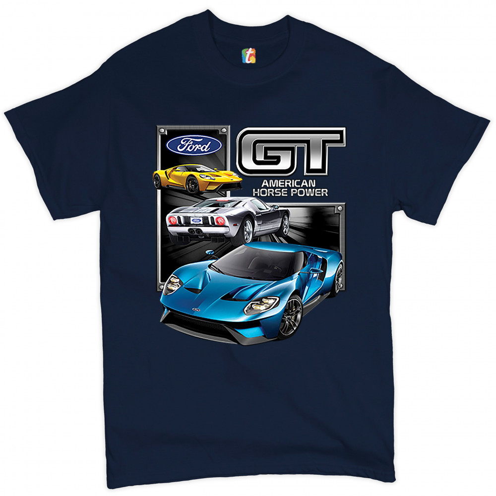 FORD GT AMERICAN HORSE POWER t-shirt sports race car licensed men's tee navy blue