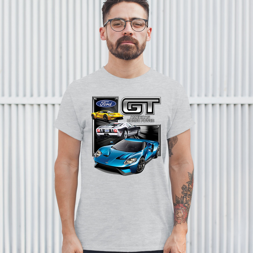 FORD GT AMERICAN HORSE POWER t-shirt sports race car licensed men's tee ash gray