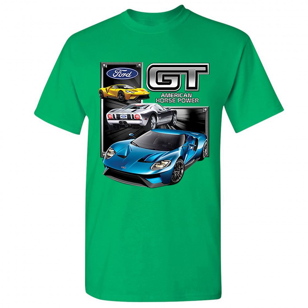 FORD GT AMERICAN HORSE POWER t-shirt sports race car licensed men's tee green
