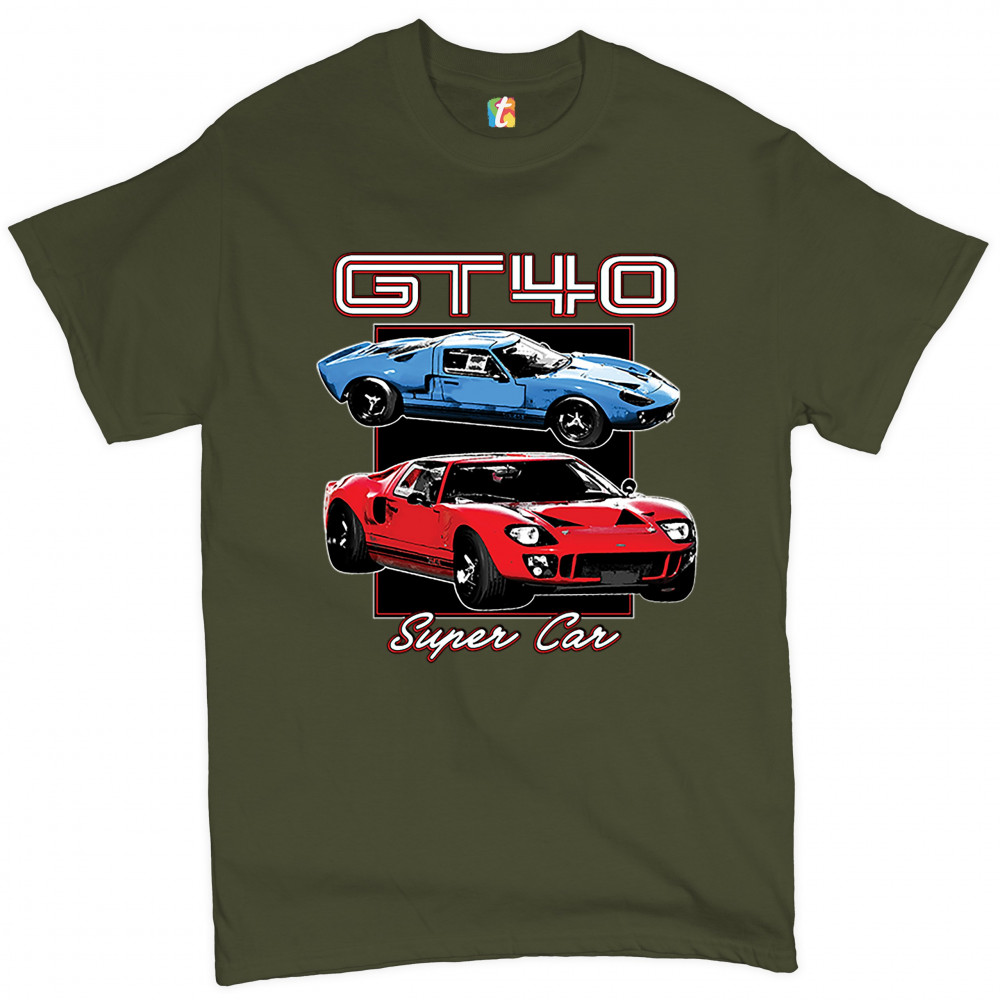 FORD GT40 t-shirt american vintage super car retro licensed men's tee military green