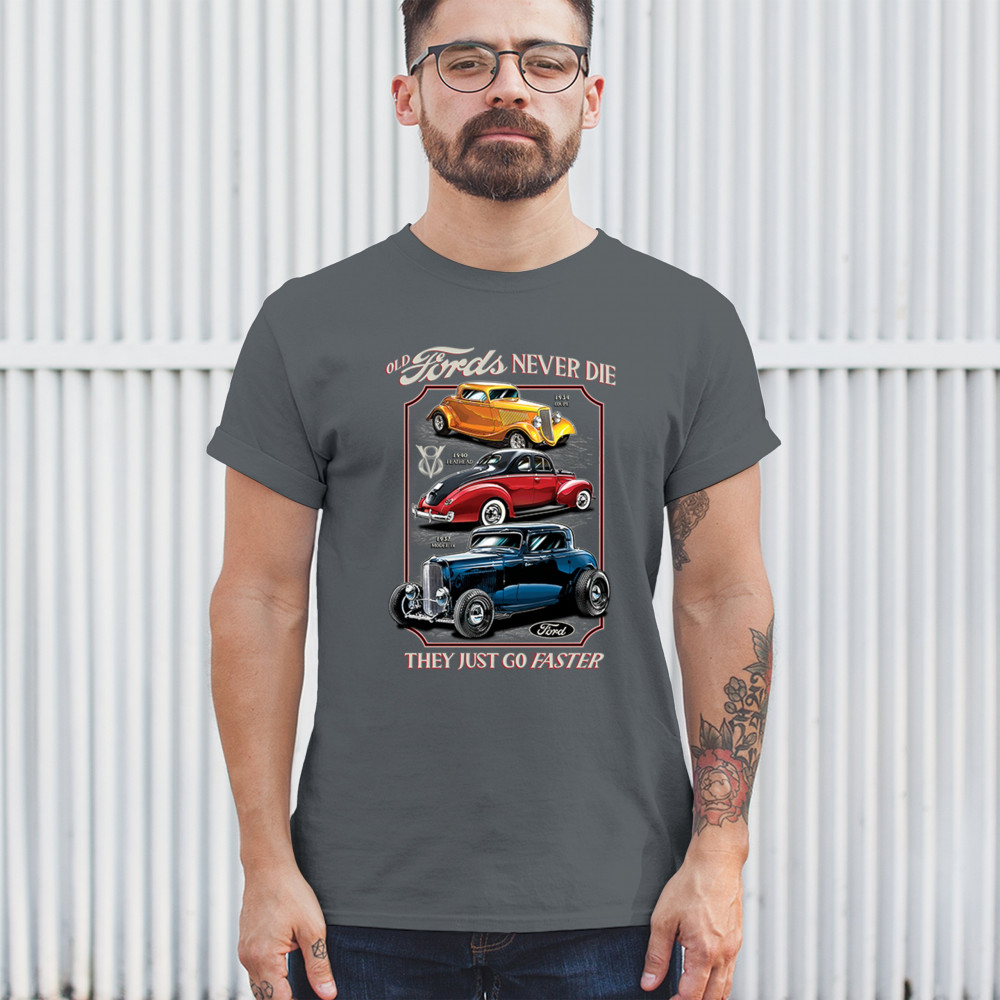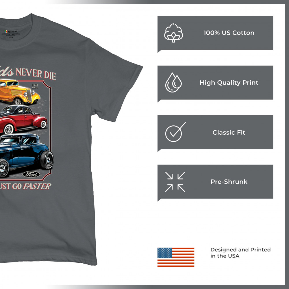 Classic Ford hot rods design in retro colors, perfect for street rod fans and vintage car lovers who live for speed and nostalgia.