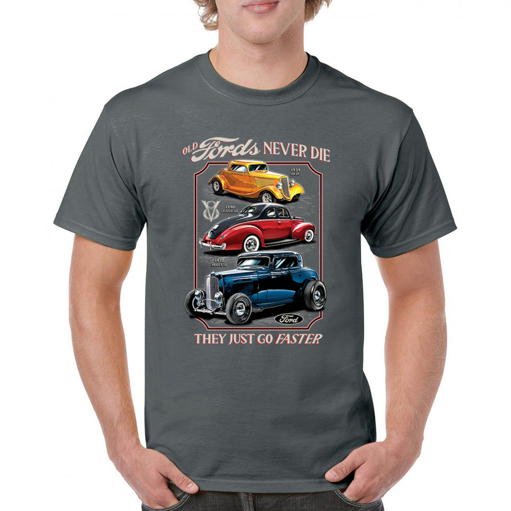 This retro design features three legendary Ford hot rods from the 1930s and 1940s, boldly rendered in a tribute to American street rod history. Ideal for muscle car lovers, vintage performance fans, and classic car culture enthusiasts who appreciate timeless speed. A must-have for cruise nights, garage hangs, and car shows.