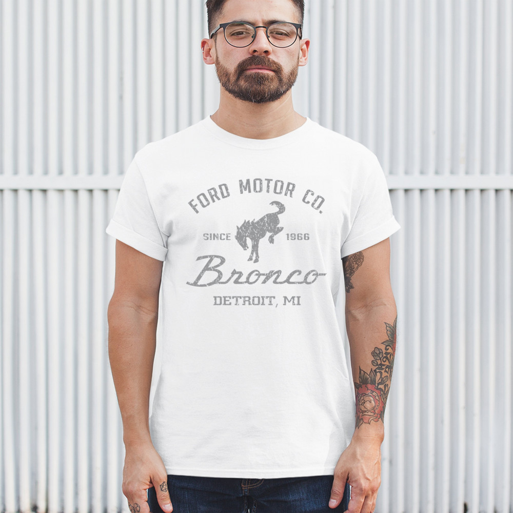 Celebrate the Ford Bronco legacy with this vintage-inspired design, highlighting Detroit’s iconic SUV since 1966. This officially licensed Ford Motor Co. merchandise is a tribute to the adventure-ready, rugged SUV lifestyle that Bronco lovers cherish. Whether you’re a classic car collector, an off-road enthusiast, or simply appreciate retro automotive art, this design represents timeless American muscle and durability.