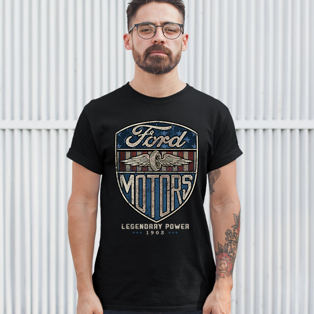 FORD MOTORS LEGENDARY POWER t-shirt fomoco licensed automotive men's tee black