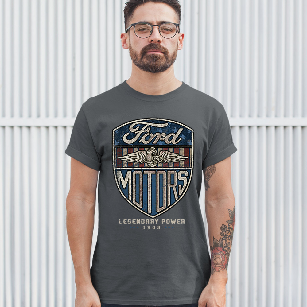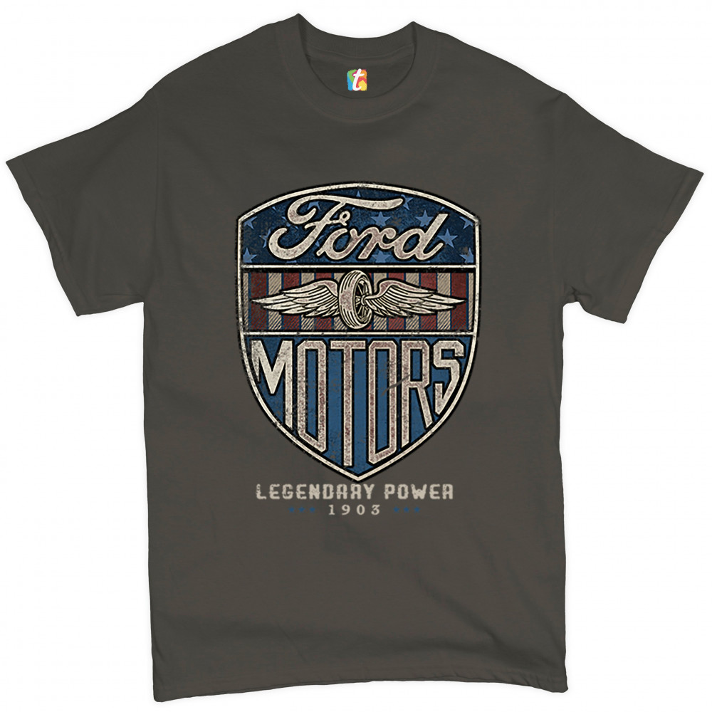 FORD MOTORS LEGENDARY POWER t-shirt fomoco licensed automotive men's tee charcoal