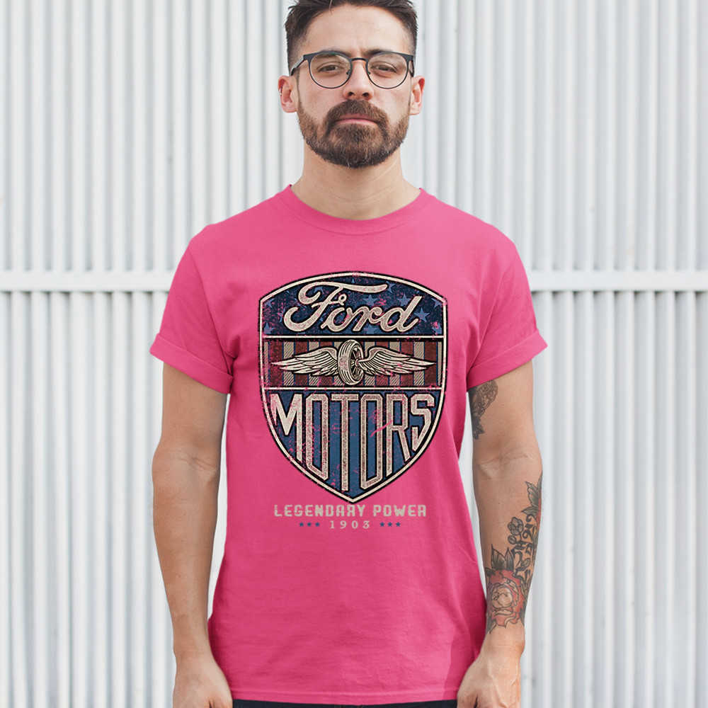 FORD MOTORS LEGENDARY POWER t-shirt fomoco licensed automotive men's tee hot pink