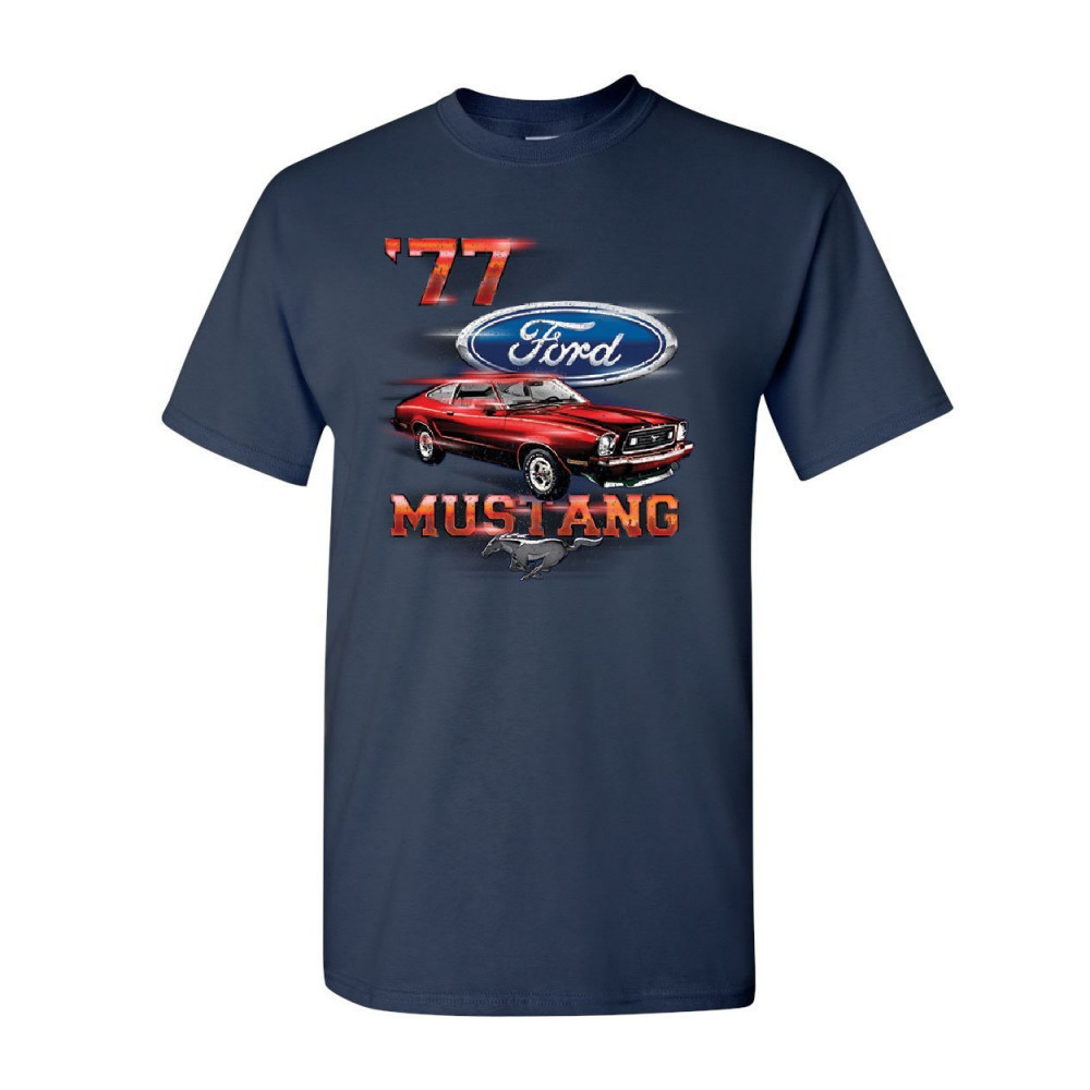 FORD MUSTANG '77 t-shirt american classic muscle car mens tee shirt navy blue