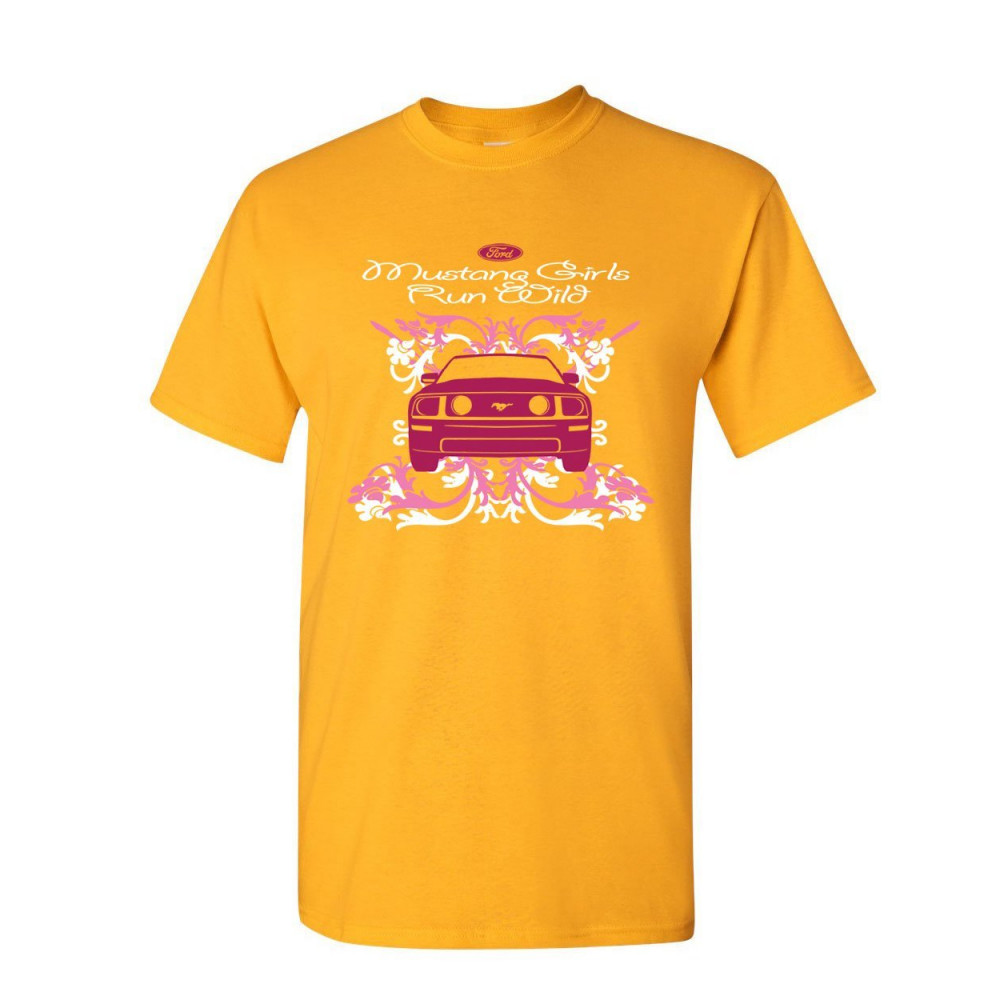 FORD MUSTANG GIRLS RUN WILD t-shirt pink american muscle car mens tee shirt yellow