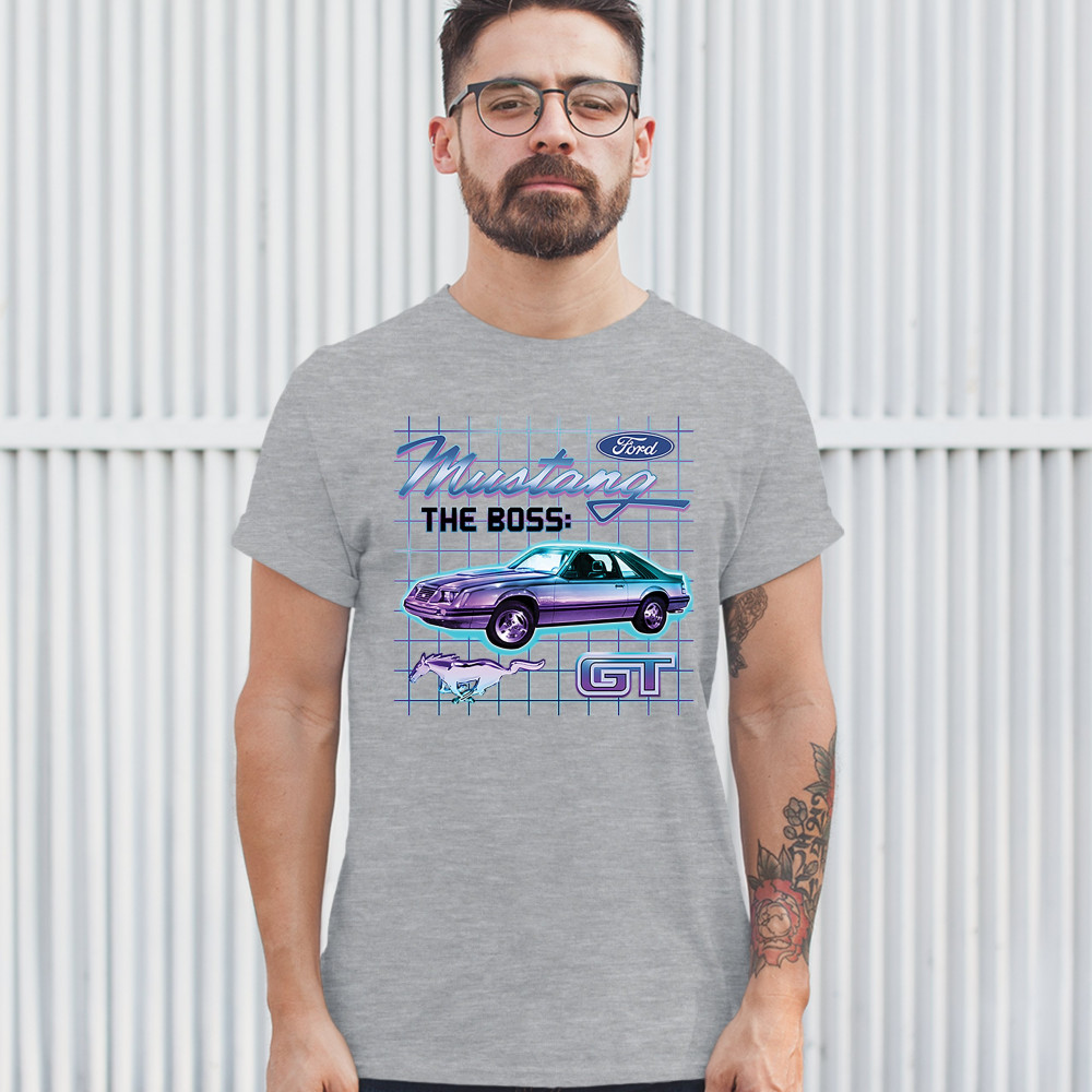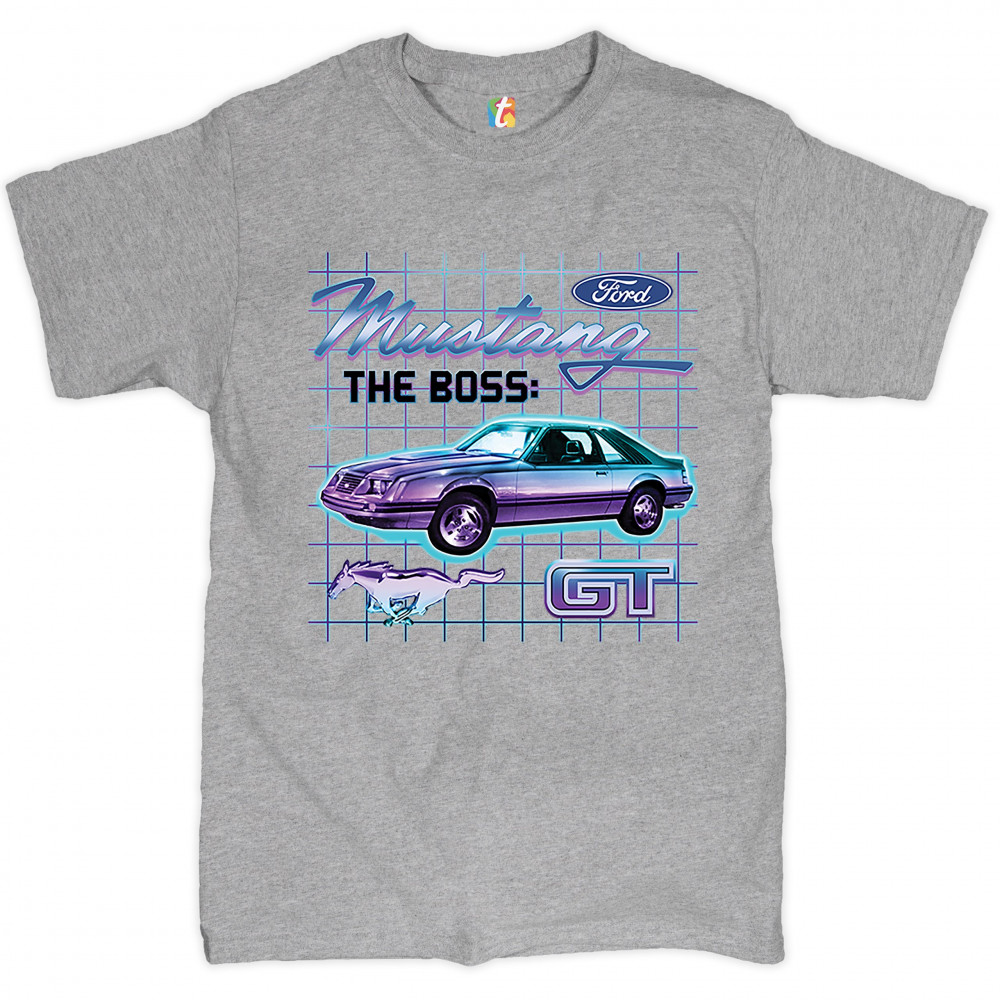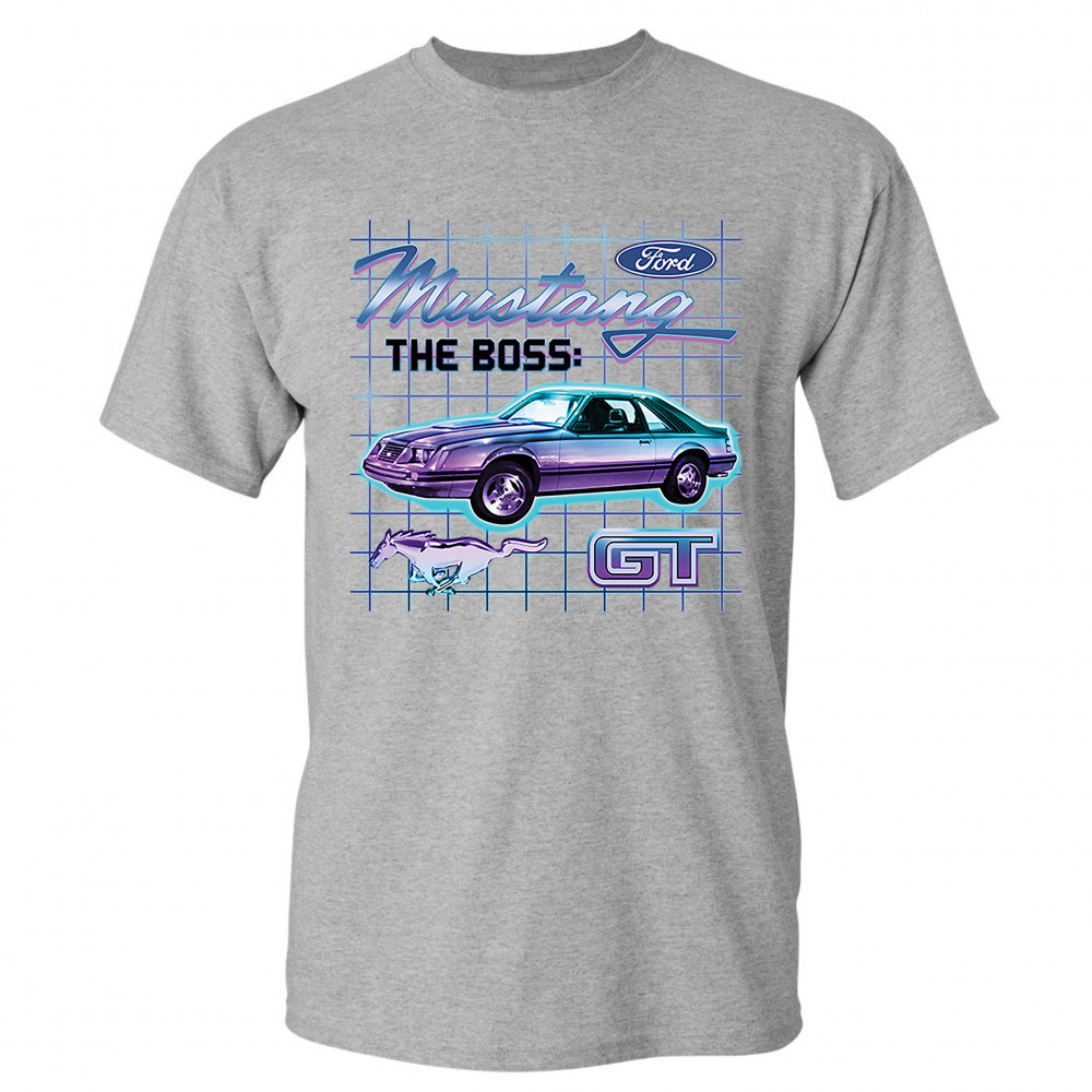 FORD MUSTANG GT THE BOSS t-shirt vintage neon car retro licensed men's tee gray